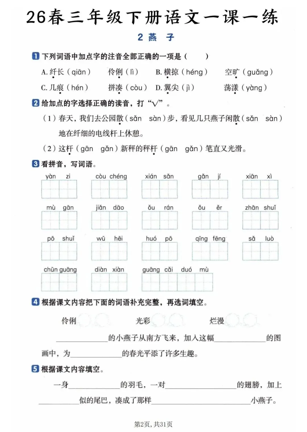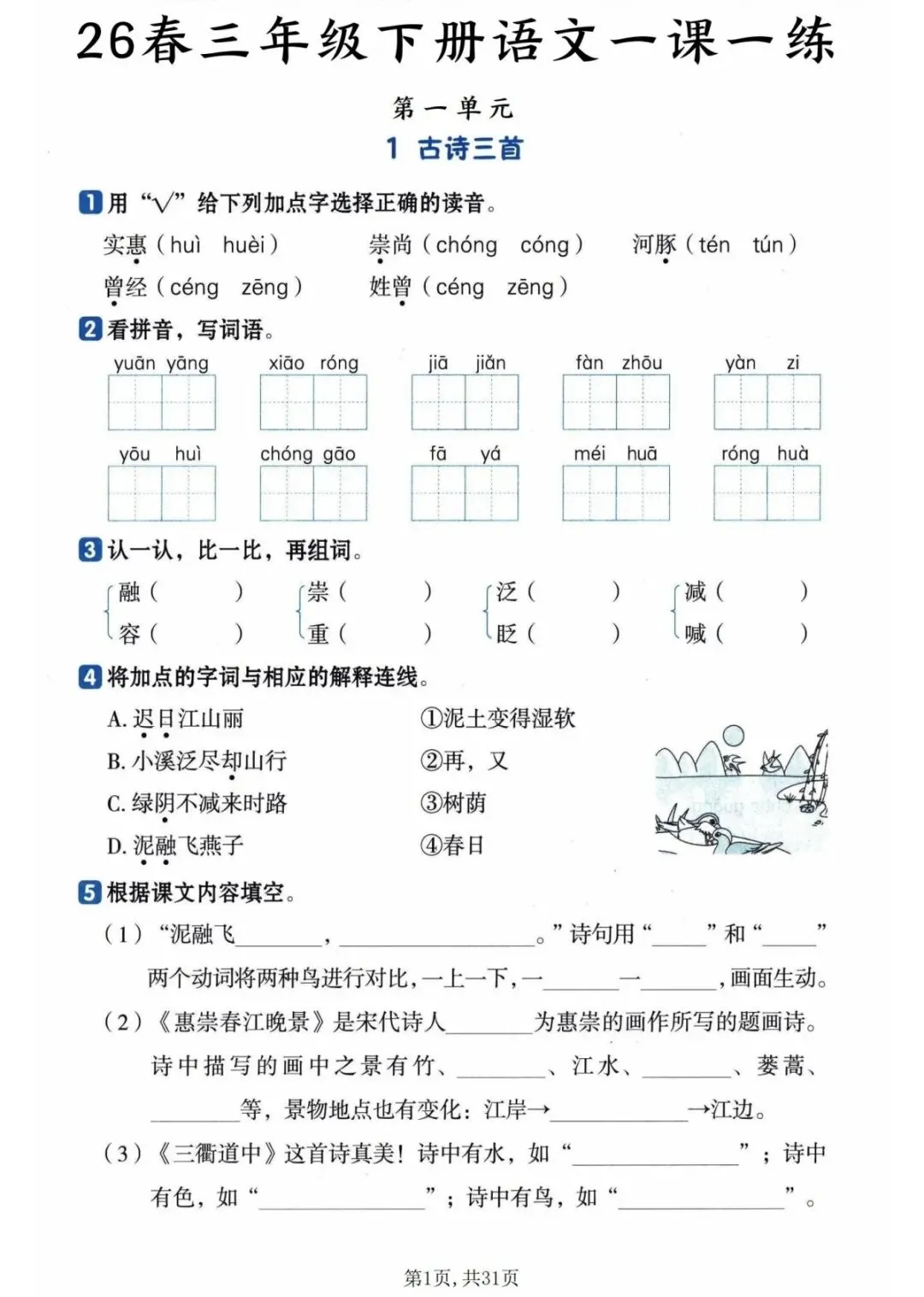 26春三年级下册语文一课一练(完整版可打印) 篇幅有限,需要完整版文末领取哈 今天分享的是26春三年级下册语文一课一练,有需要的家长抓紧打印出来,让孩子记一记,练一练,更好的掌握三年级语文基础! 【需要完整版看这里哦👇】