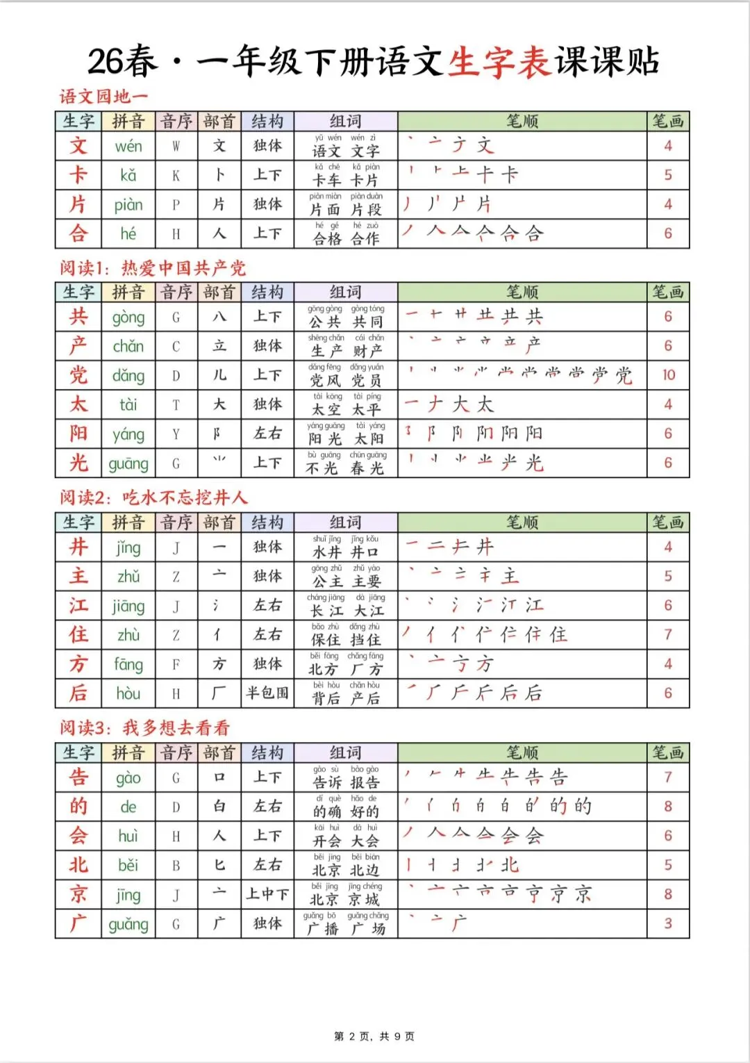 一年级(下册)语文 生字表课课帖(完整版可下载打印)