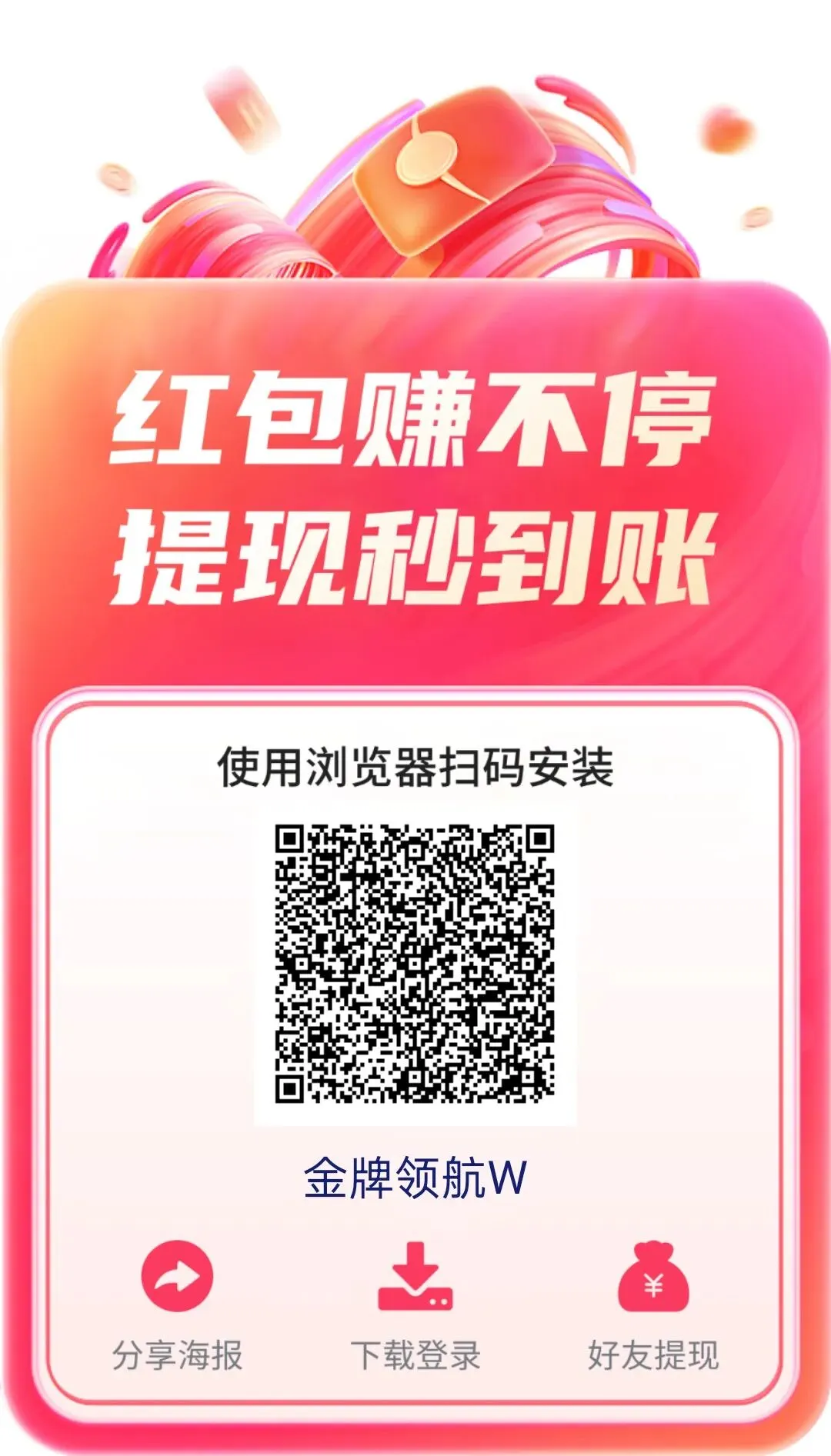 金牌领航app~ 金牌领航-撸包教程 (保存码↓用浏览器扫下载) 下好没师傅的帮一下:55 (看教程↓步骤操作) 这是洋洋家新台子 ~和好好赚家 玩法一样~🉑每天玩~最高一个包1.2迷 新台子放水好撸啊~每天单机10-20➕轻松,多📱多砖啊🎉🎉每天撸了提到自己口袋 划重点/:弹出来的广告多去浏览 就跟咱们平时去看视频 去逛购物一样去操作就行,做好真人数据金币才涨得快~ 零撸不投一毛.每天秒提秒到~