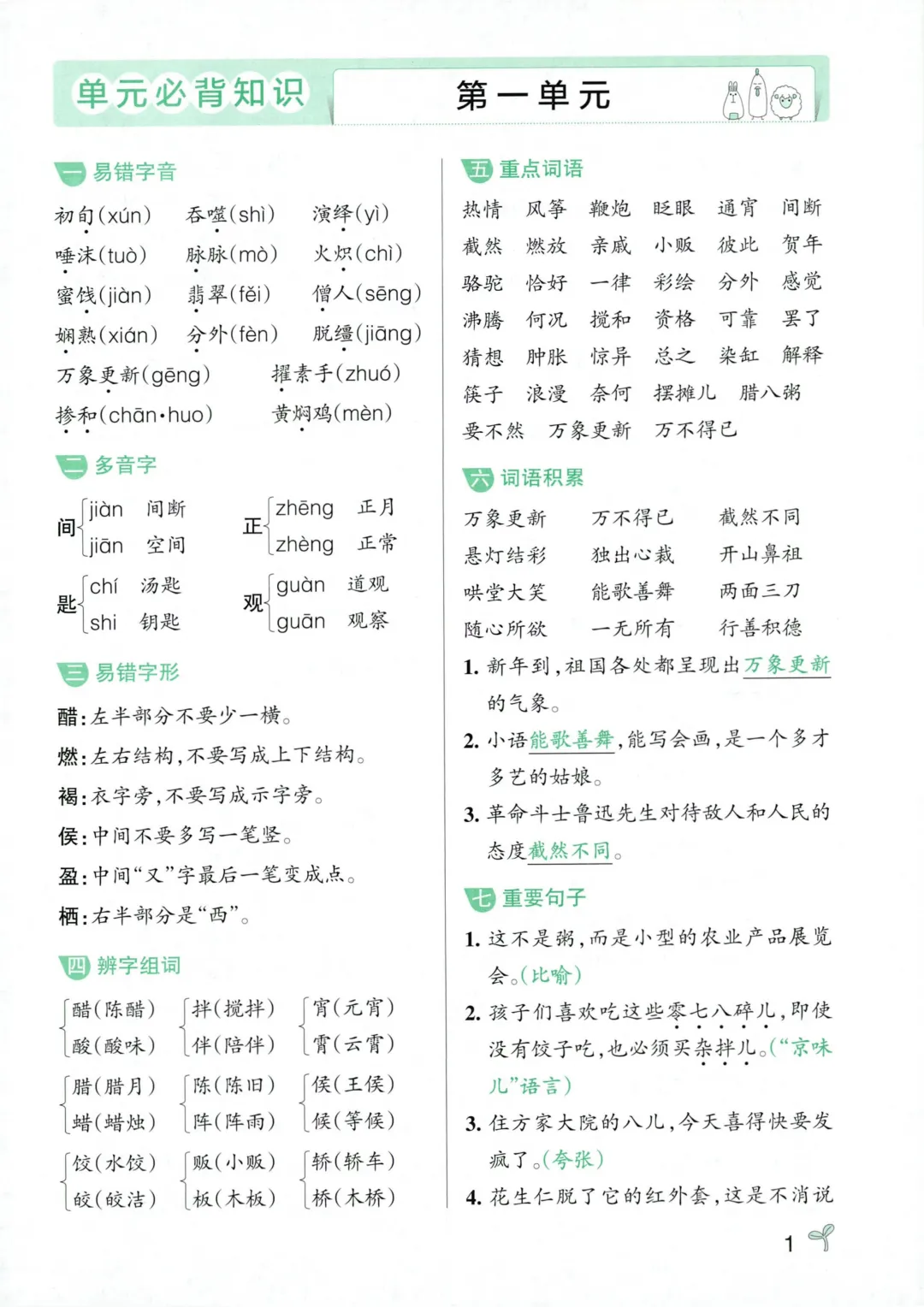 六年级下册语文1-8单元必背知识(电子版可打印)