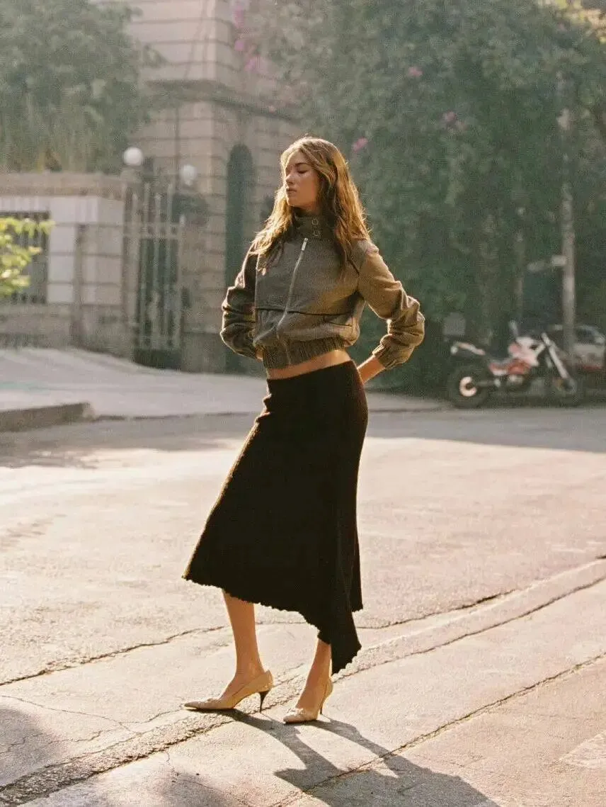 所谓迷笛裙,指的是长度恰好盖过膝盖、停留在小腿与脚踝之间的中长裙。