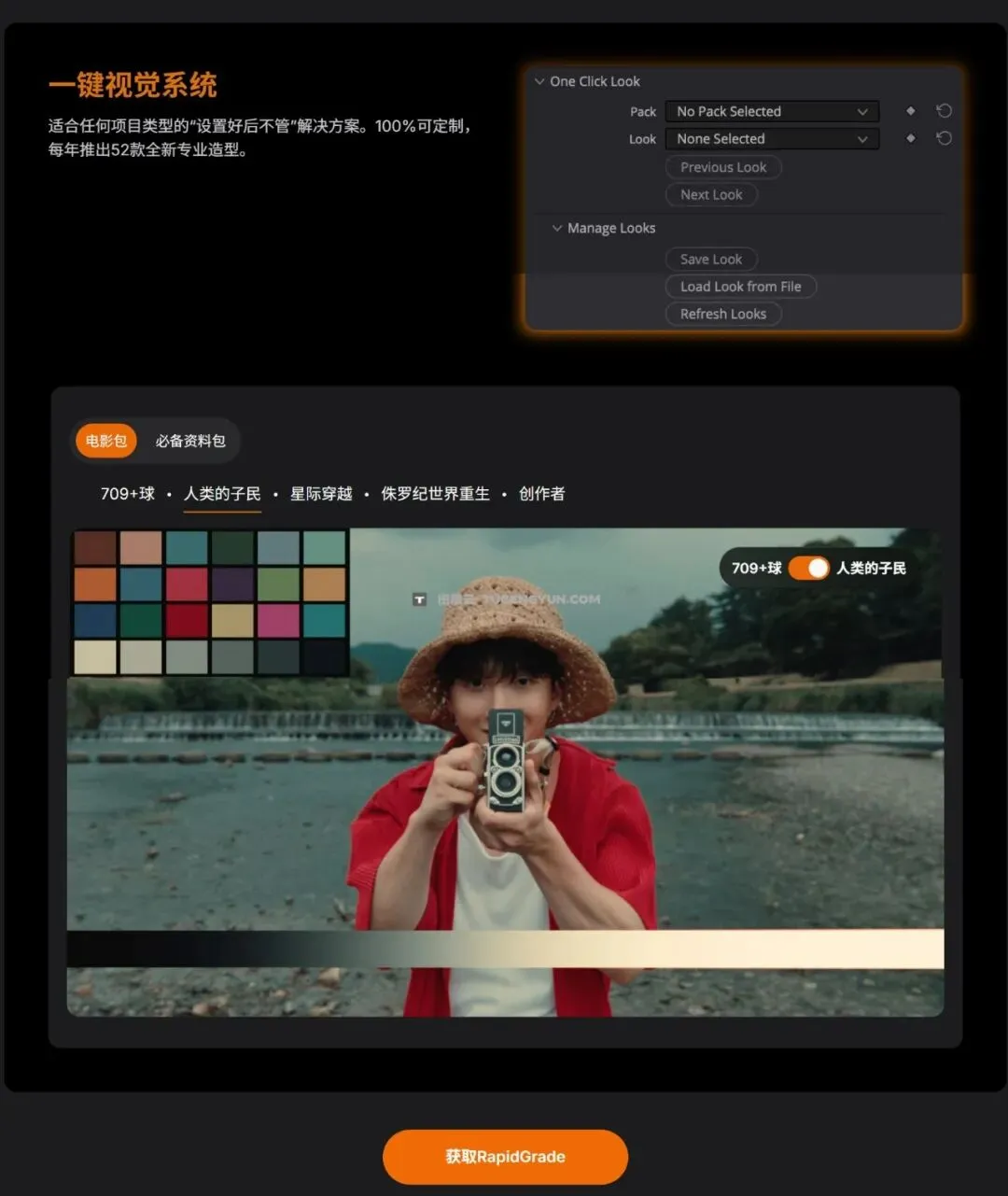 『新品』达芬奇插件:一键式好莱坞电影风格化胶片模拟调色插件 Rapidgrade – Qazi Qazverse Win破解版(14767)插件包含了独有的一键式外观系统,只需轻轻一点,即可打造任何你想要的效果。青色和橙色?一键搞定。简洁的商业效果?一键搞定。经典的好莱坞风格?一键搞定。即刻获得理想效果。