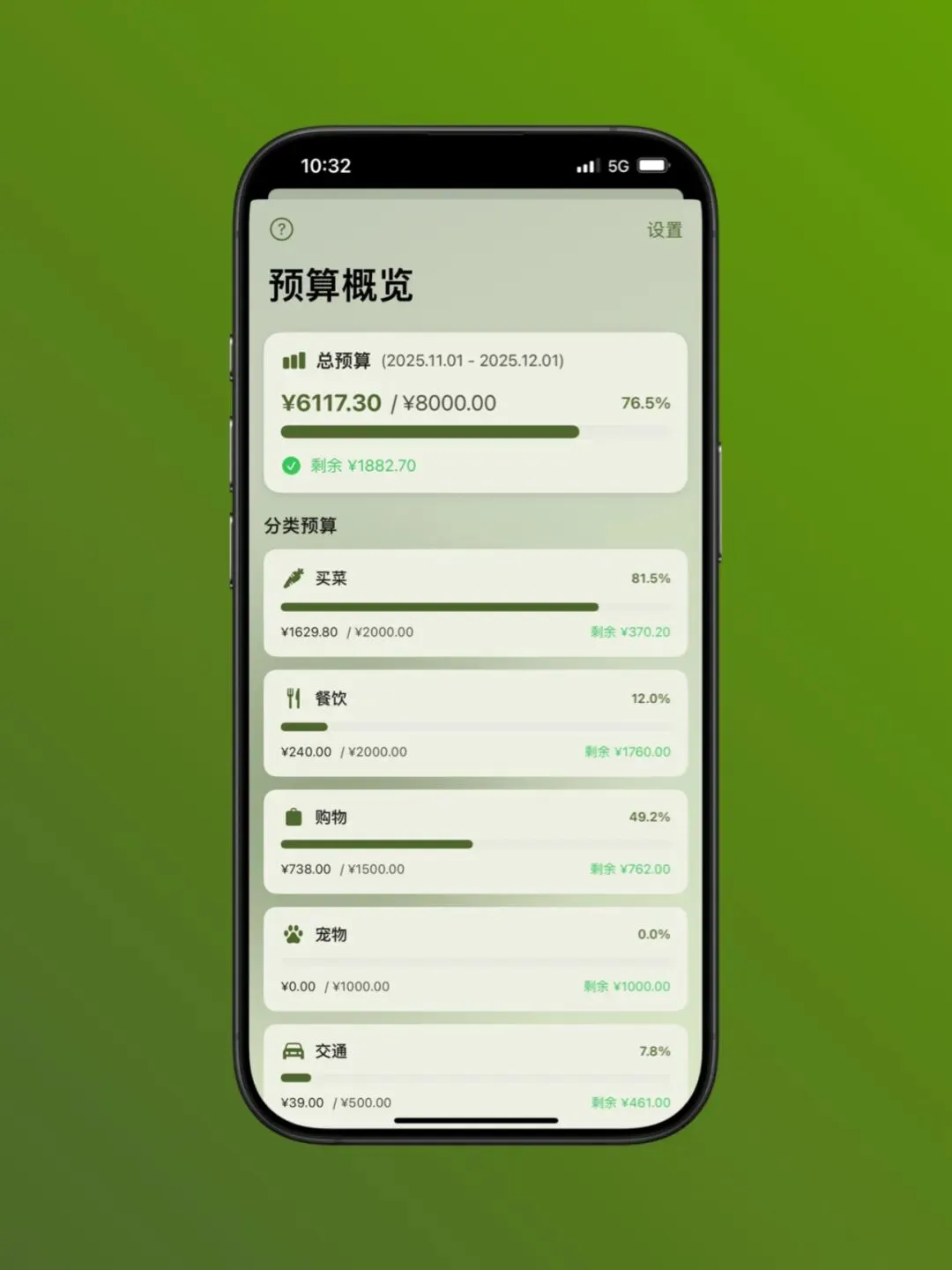 用自动记账功能,让App帮你记,你只需要每周看一次报表。
