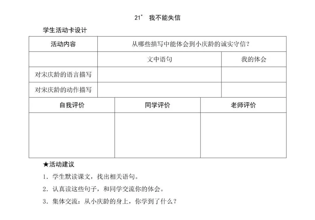 部编三年级语文(下册)课前预习单,可下载打印! 如需下载电子打印版 请拉到文章末尾免费领取 领 取 步 骤 第一步:长按识别二维码关注:i小学 第二步:在i小学公众号底部对话框回复关键词:下册预习单即可领取。(要按照正确的关键字回复哦,否则系统无法识别) ——END—— ▍来源:网络。本公众号尊重原创,好的内容值得分享,如有侵权请联系删除。本文图片均来自网络