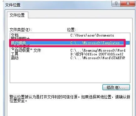 想要修改word默认模板路径很简单,用上面第3步打开word模板路径之后,在修改位置中重新选择word模板路径位置,然后点击确定就可以了。
