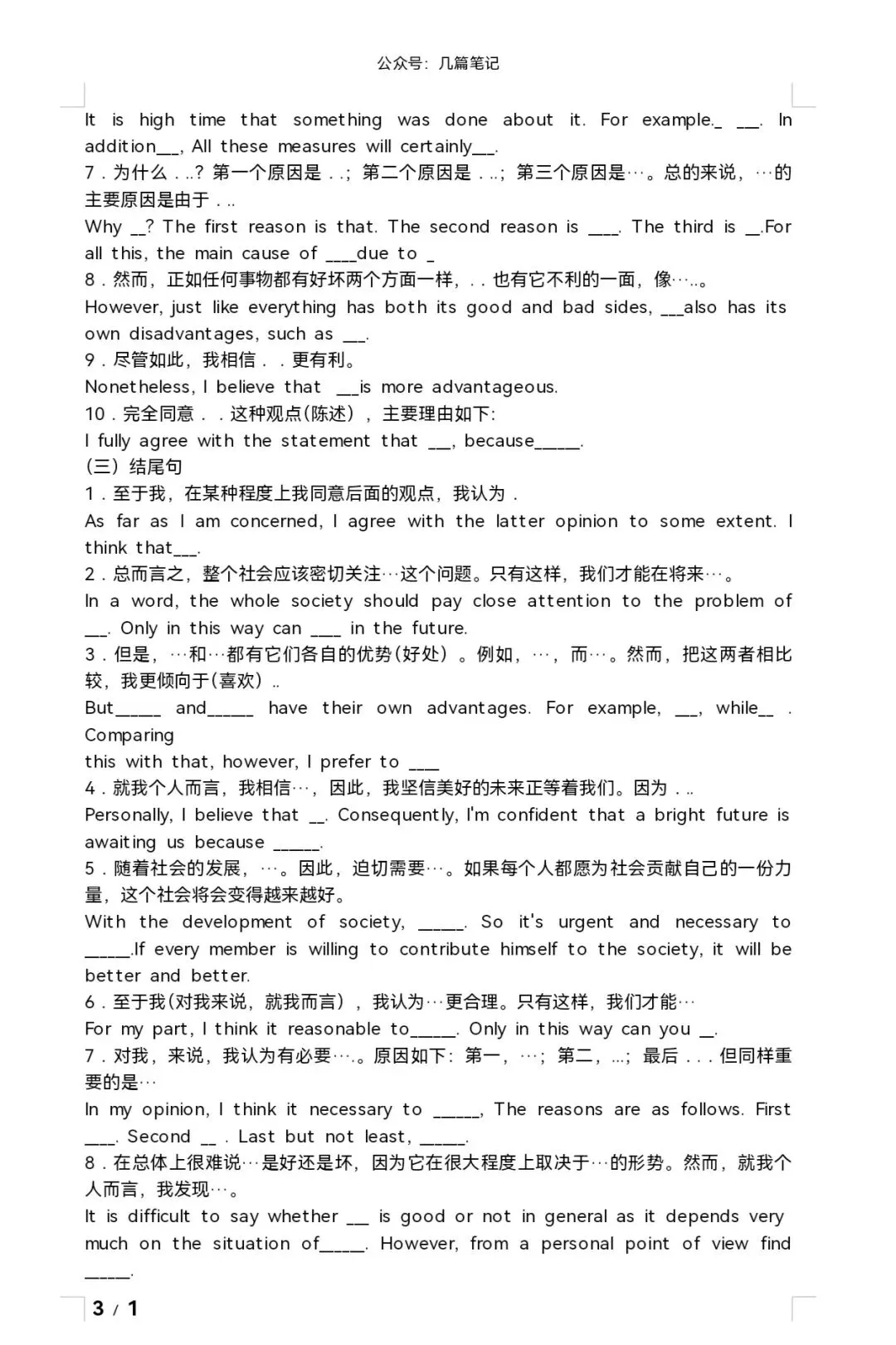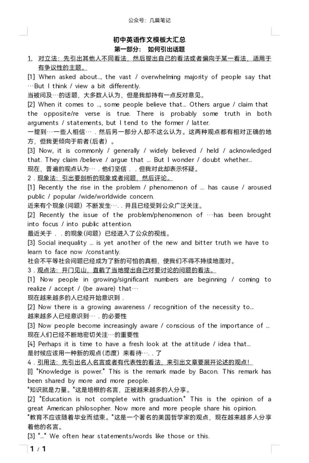 初高中英语通用作文模板!附完整电子版 点击上方蓝字 立即获取知识! @ 下滑至文末 获取完整打印版方式!!!! 01 以下仅为文档部分展示 (以上仅为文档部分展示) 注意:该资料仅可用作交流学习,不可商用! 长按二维码回复“002”获取完整电子版