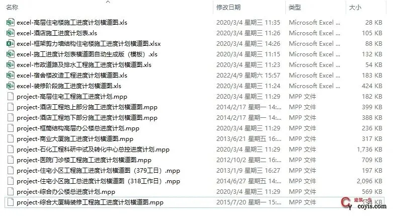 19个施工进度计划横道图样板丨Excel、project直接拿
