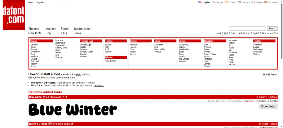 DaFont是国外老牌免费字体下载网站,创建于2000年,核心优势在于西文字体资源丰富,风格多样,适合需要特色西文字体的创意项目,是设计师获取个性字体的重要渠道。