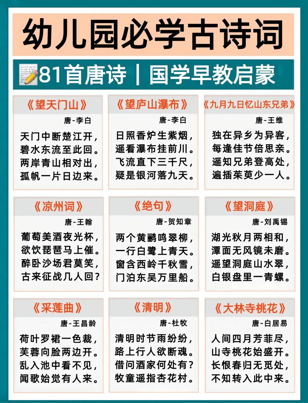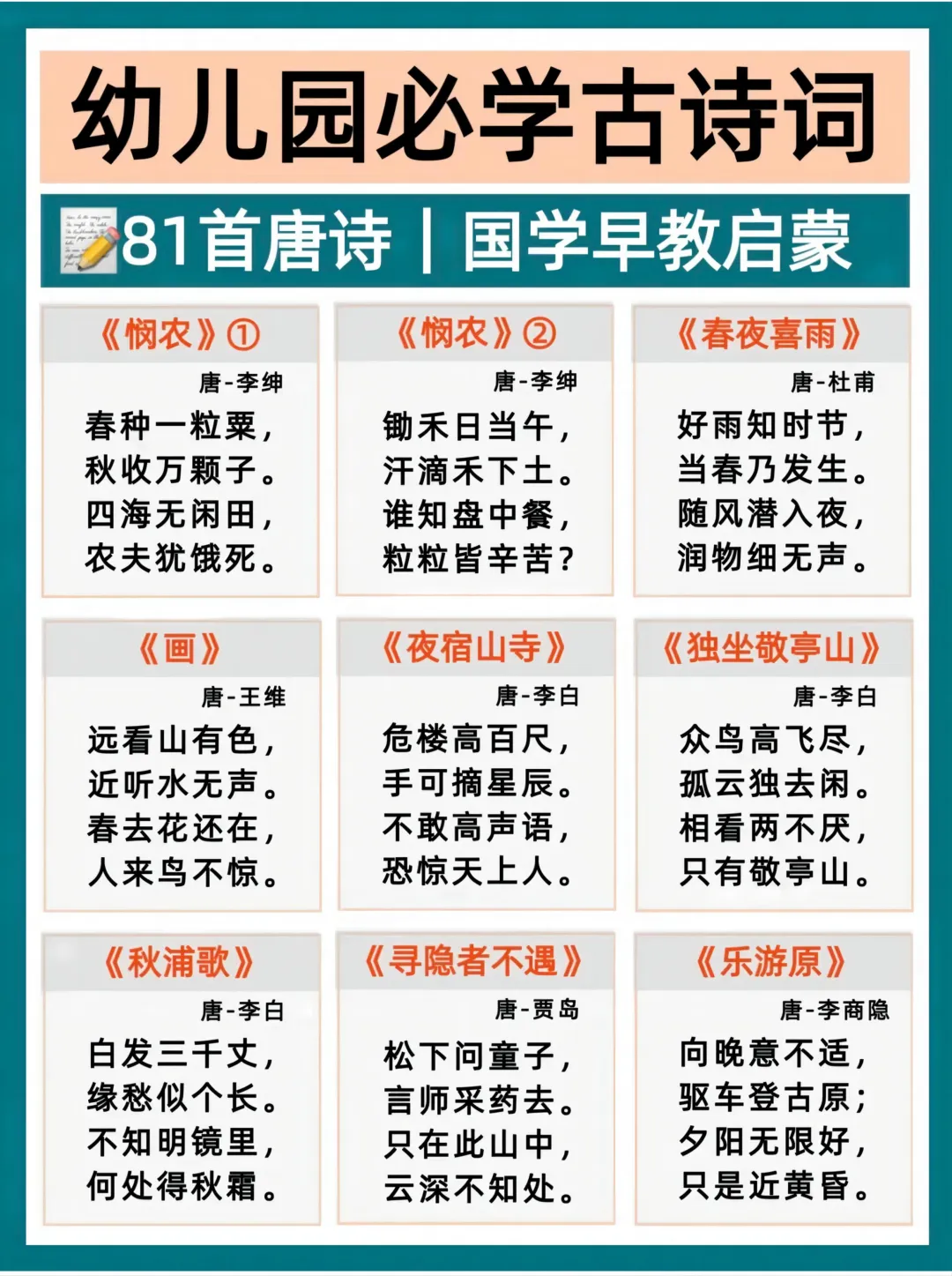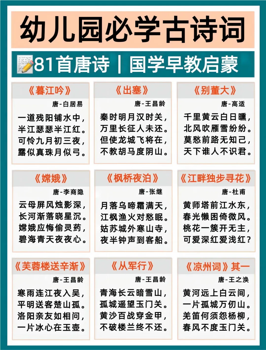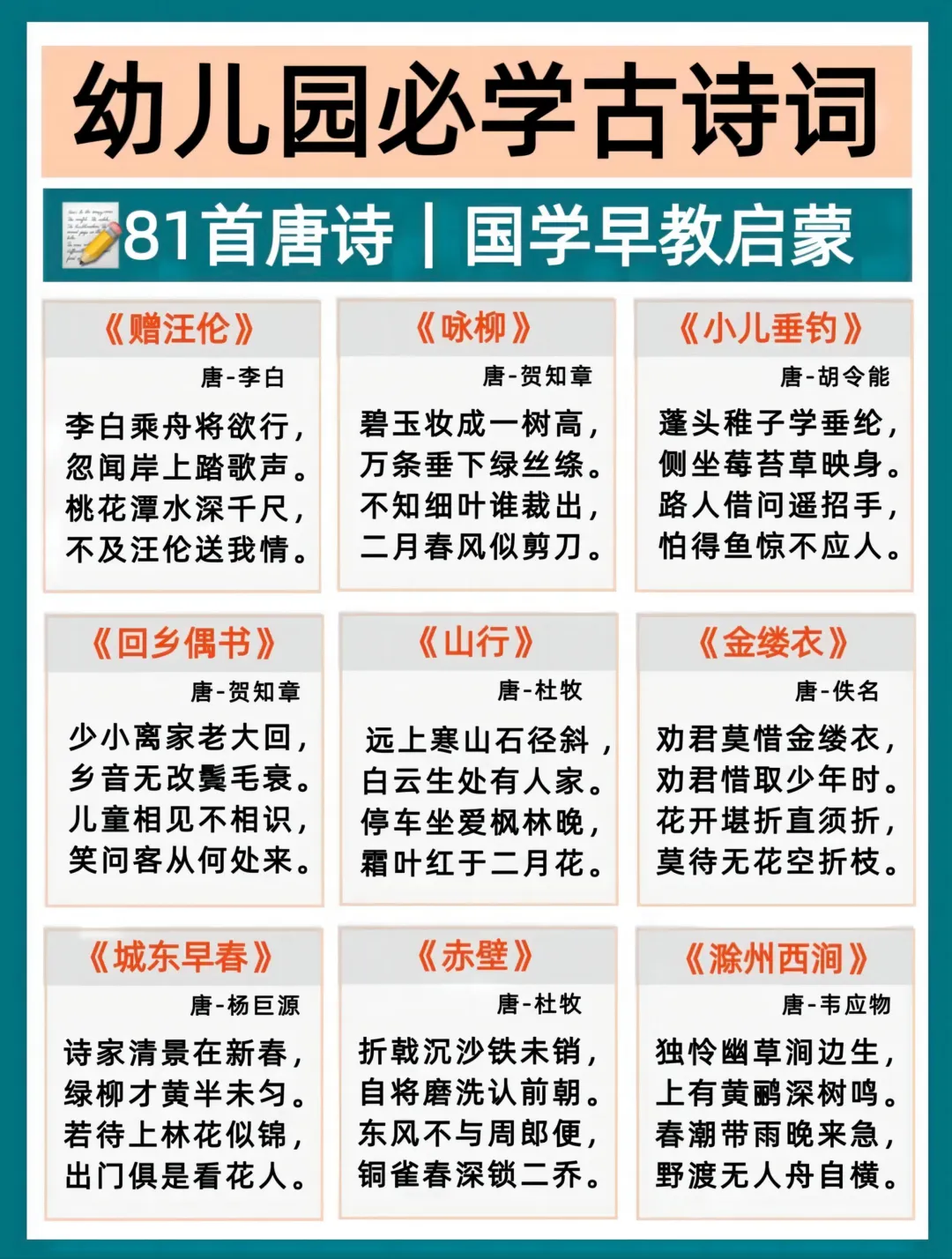 2026年春 幼小衔接必背古诗。核心知识牢牢掌握~爸爸妈妈快点打印出来,让孩子练一练吧。