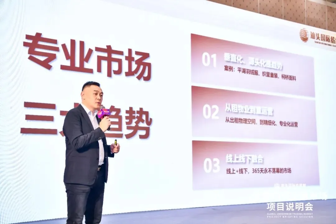 汕头国际纺织城全球内衣交易市场运营公司总经理郭勇标,详细解读项目定位、核心优势、整体概况及发展愿景。该市场作为广东省重点项目核心板块,依托汕头国际纺织城5,000亩产业枢纽,深度辐射周边超8,000家上下游企业及千亿级纺织服装产业集群。
