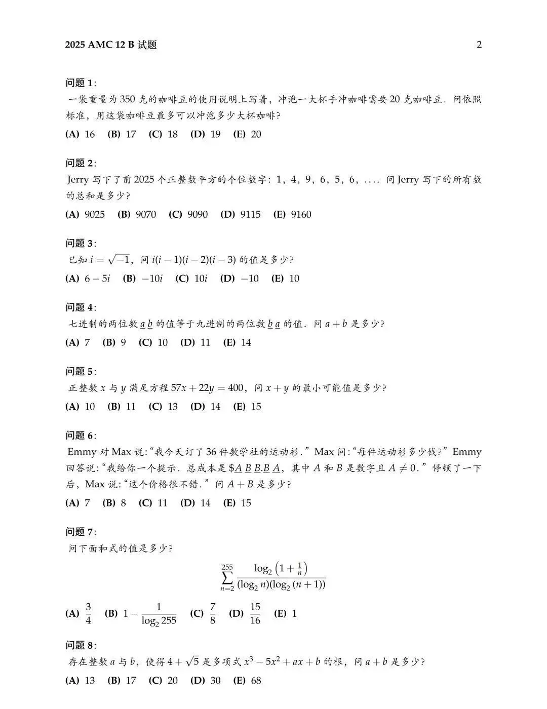2025AMC12-A/B卷