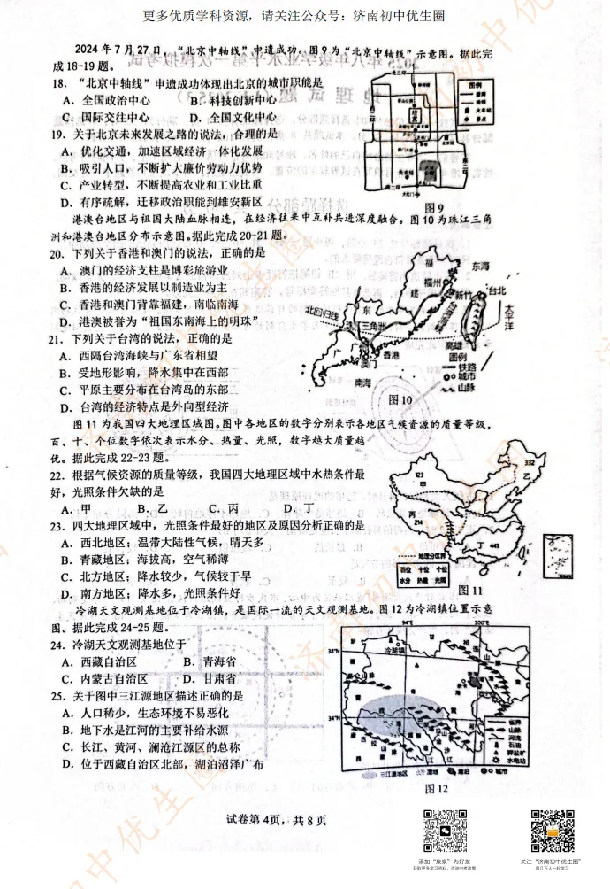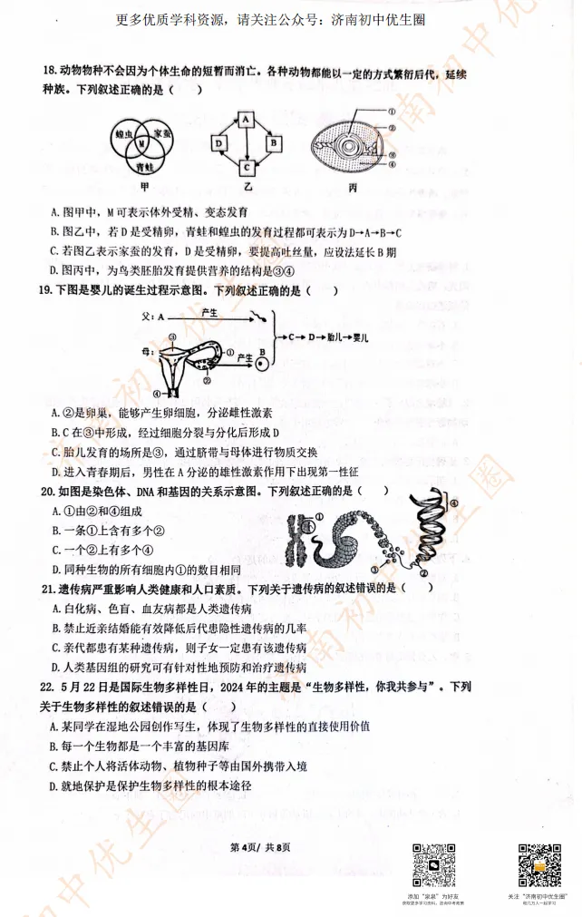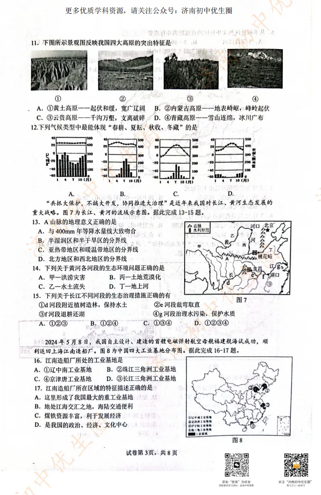 今天小初老师给大家整理2025历下区生物、地理一模模拟试题,距离生地会考只剩一百天左右,大家可以利用假期提前准备。PDF高清版,可以扫描下方二维码免费获取!