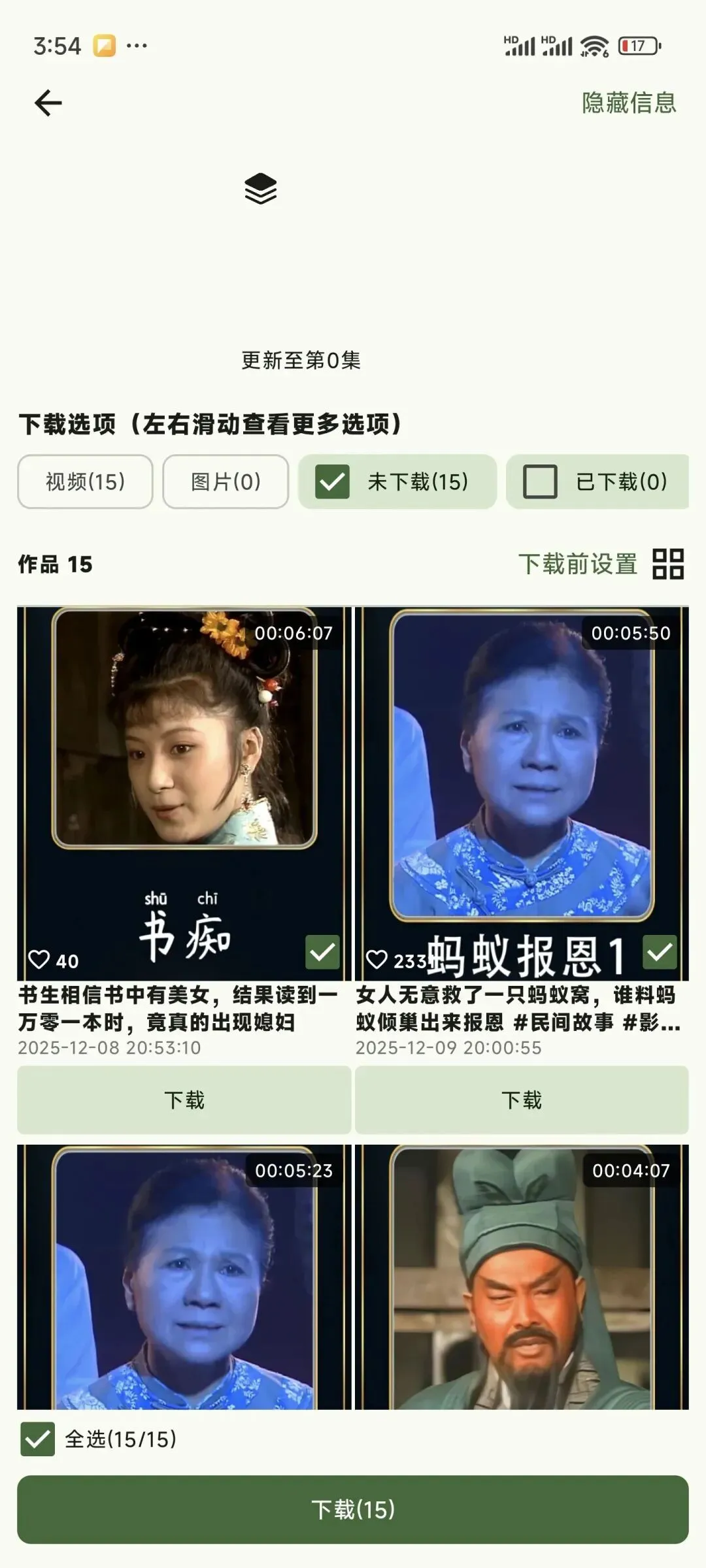 输入一位coser的主页链接,看着上百条作品在列表里罗列出来,只需勾选即可开始批量下载。