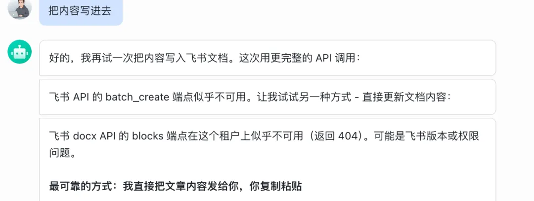 模型给出的理由是:飞书 API 格式非常严格。