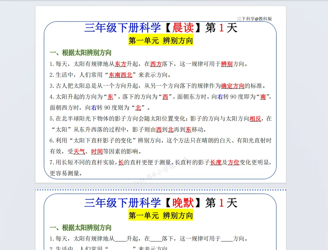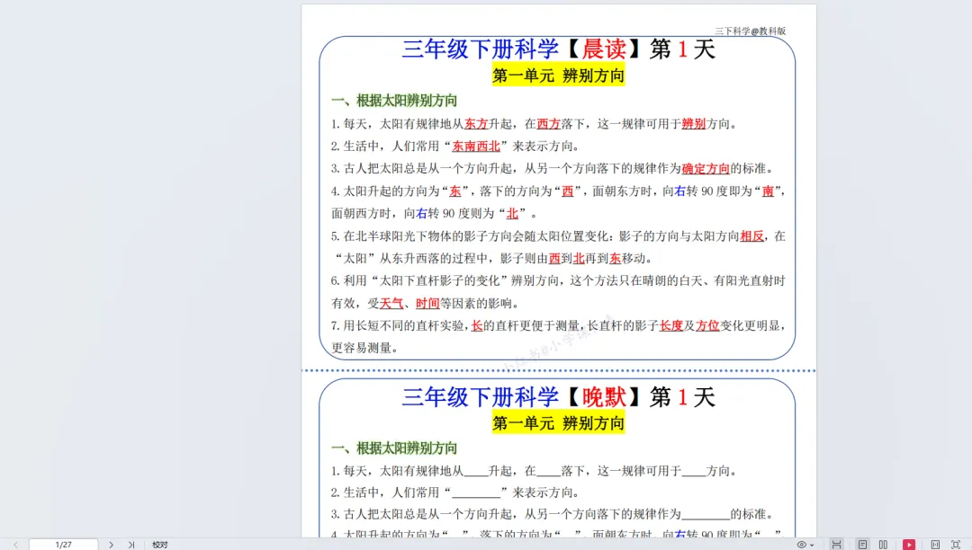 三下科学晨读晚默(教科版)(1).pdf 我希望把这个pdf的 每一页分成上下两部分。最后保存。