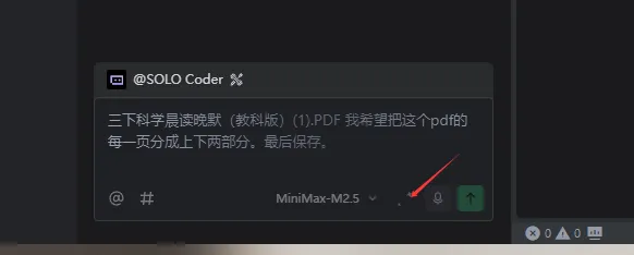 。再唠叨一句,AI时代,手打输入太过时了,可以语音输入了,反正你说的一些胡话,AI也可以理解。尤其当你要输入的提示词过多时,语音输入真的不要太方便。from pypdf import PdfReader, PdfWriterfrom reportlab.pdfgen import canvasfrom reportlab.lib.pagesizes import letterimport ioinput_pdf = "三下科学晨读晚默(教科版)(1).pdf"output_pdf = "三下科学晨读晚默(教科版)_分割合并.pdf"reader = PdfReader(input_pdf)print(f"总页数: {len(reader.pages)}")if reader.pages:page = reader.pages[0]media_box = page.mediaboxwidth = float(media_box.width)height = float(media_box.height)print(f"页面宽度: {width}")print(f"页面高度: {height}")writer = PdfWriter()for i, page in enumerate(reader.pages):media_box = page.mediaboxpage_width = float(media_box.width)page_height = float(media_box.height)mid_height = page_height / 2top_page = PdfWriter()top_page.add_page(page)top_page.pages[0].mediabox.upper_left = (0, page_height)top_page.pages[0].mediabox.lower_right = (page_width, mid_height)bottom_page = PdfWriter()bottom_page.add_page(page)bottom_page.pages[0].mediabox.upper_left = (0, mid_height)bottom_page.pages[0].mediabox.lower_right = (page_width, 0)top_output = io.BytesIO()top_page.write(top_output)top_output.seek(0)writer.add_page(PdfReader(top_output).pages[0])bottom_output = io.BytesIO()bottom_page.write(bottom_output)bottom_output.seek(0)writer.add_page(PdfReader(bottom_output).pages[0])print(f"第 {i+1} 页已分割为上下两部分")with open(output_pdf, "wb") as f:writer.write(f)print(f"处理完成,已保存为: {output_pdf}")