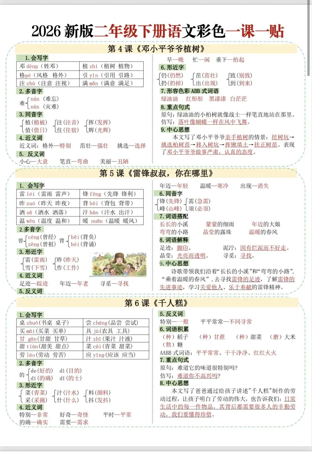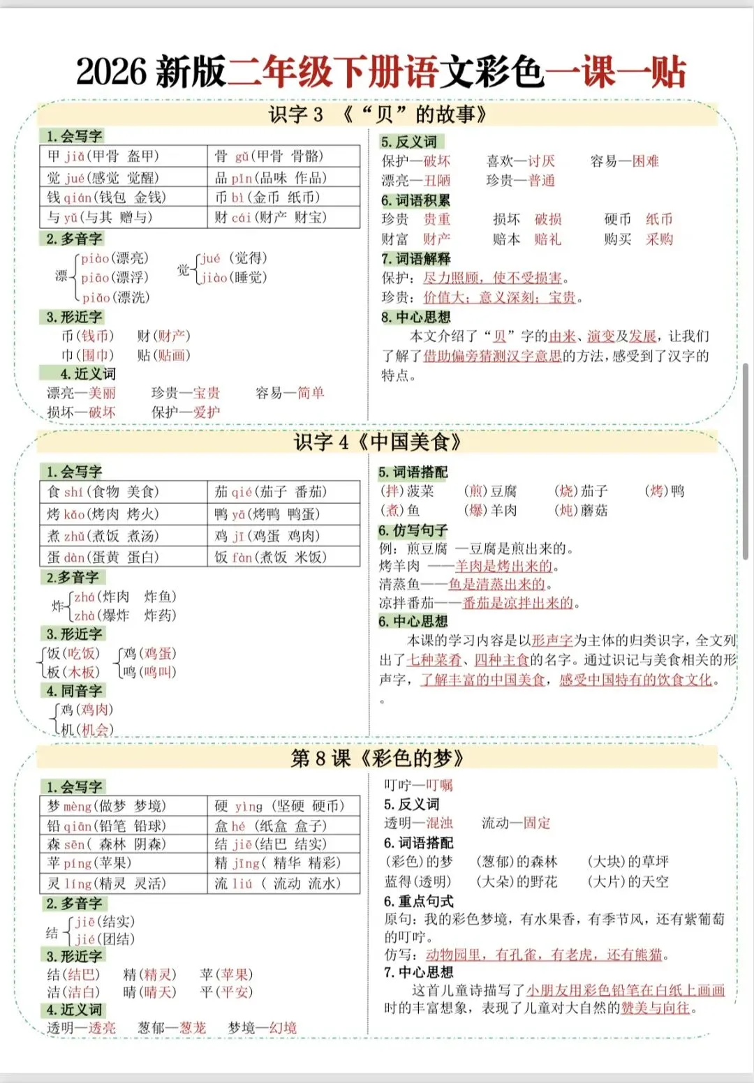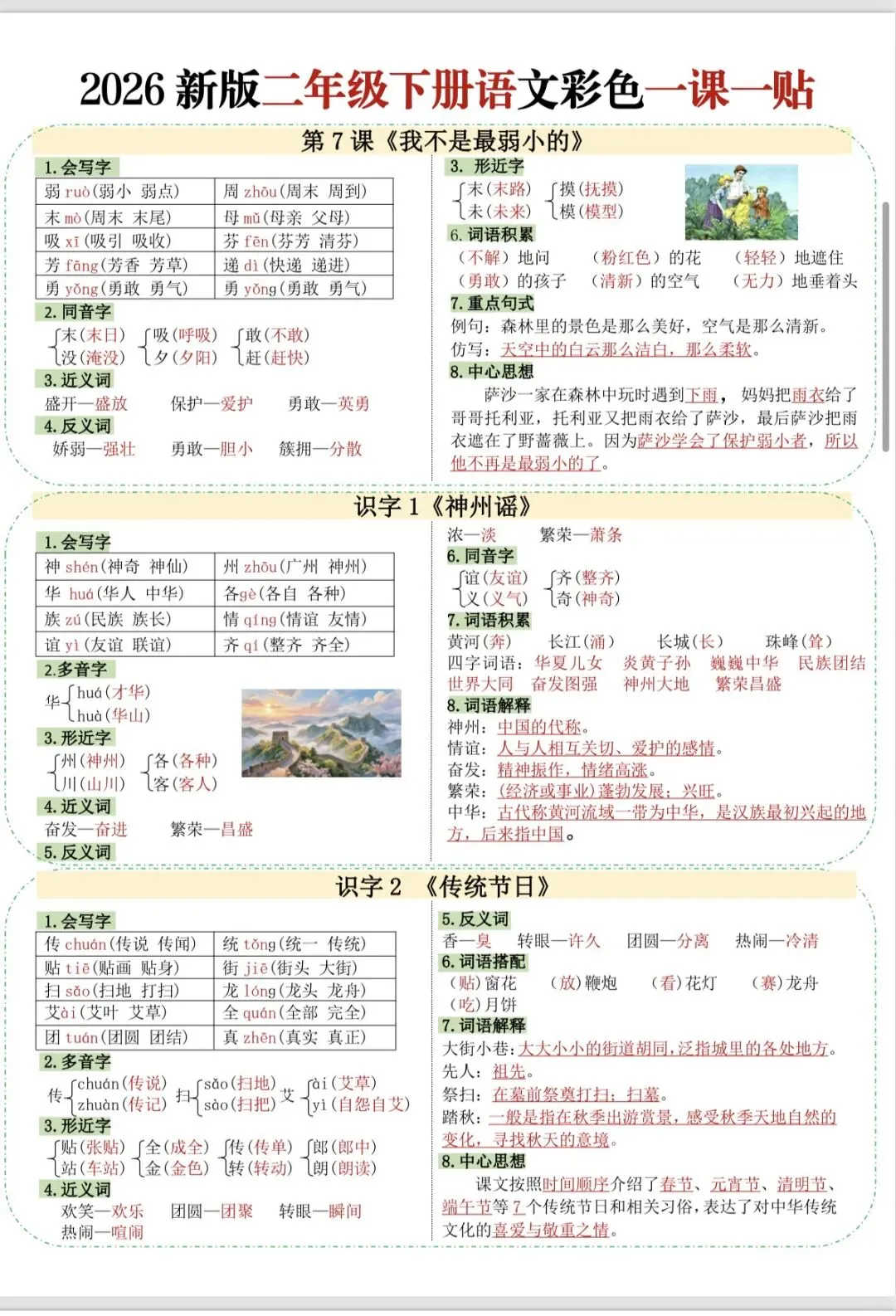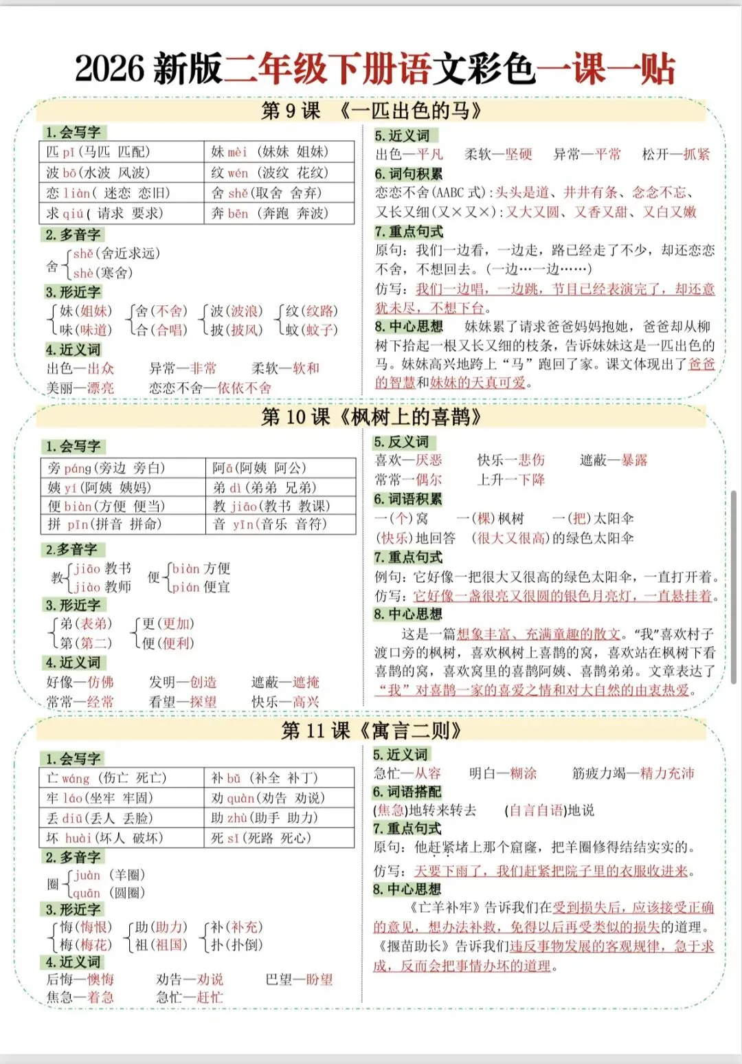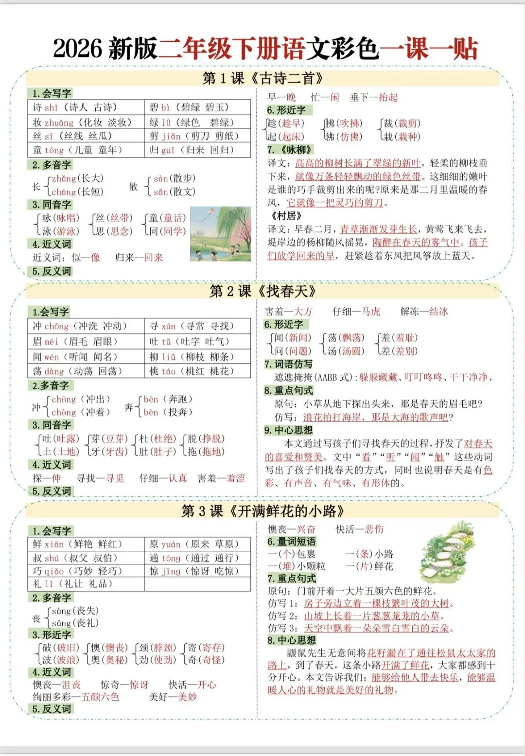 二年级语文下册彩色一课一贴(完整版可打印)