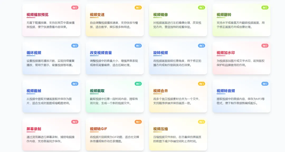 这个网站集成了23项核心视频处理功能于一个免费平台: