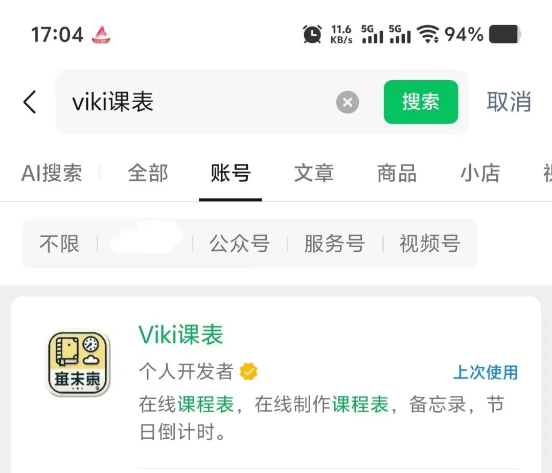 超简单!微信搜索“viki课表” 小程序,点击进入,直接开启你的DIY课表之旅,无需注册,点击即用~点我进入Viki课表