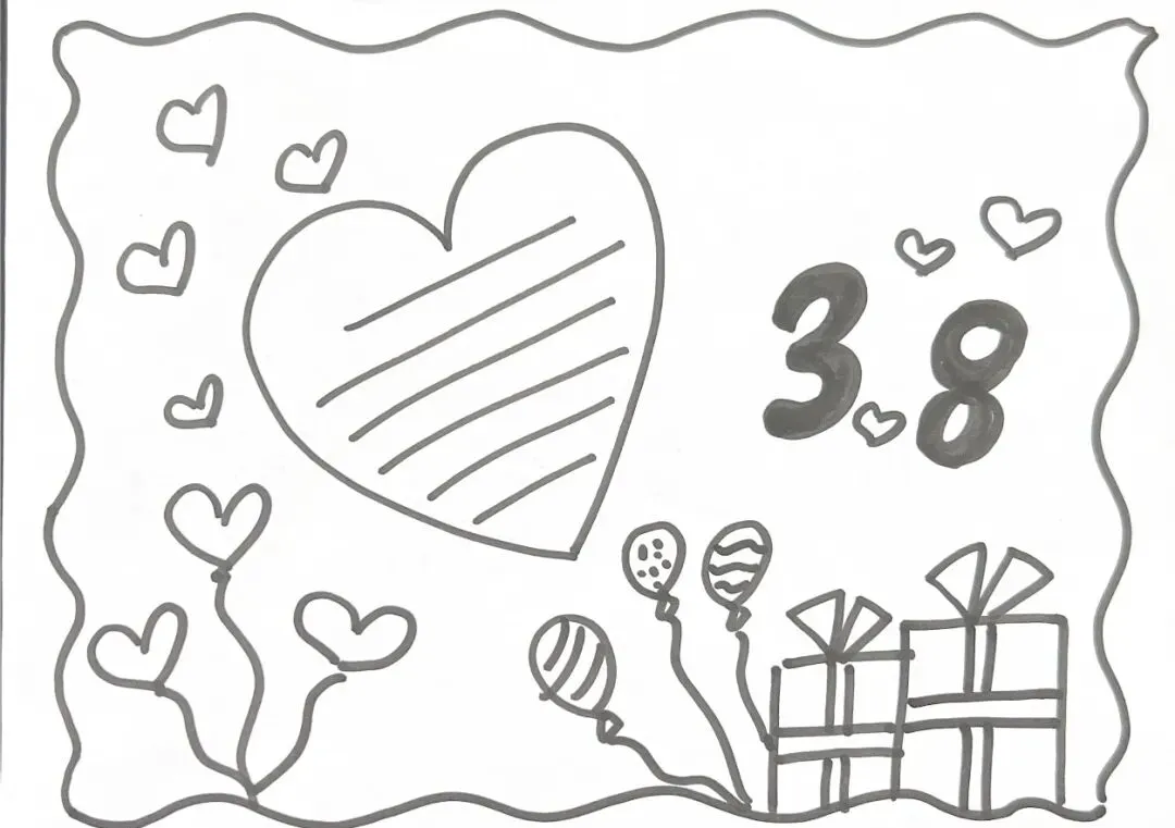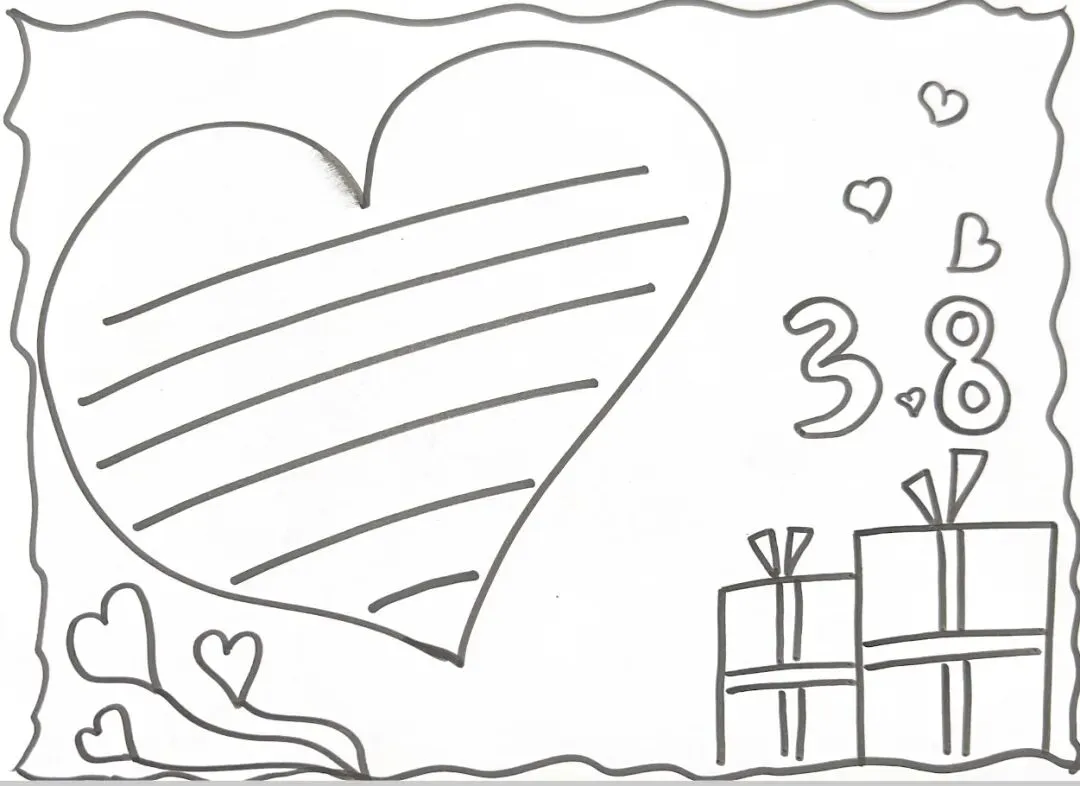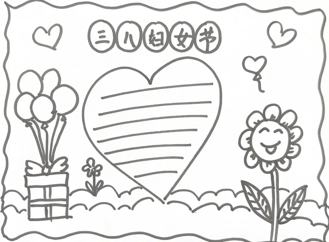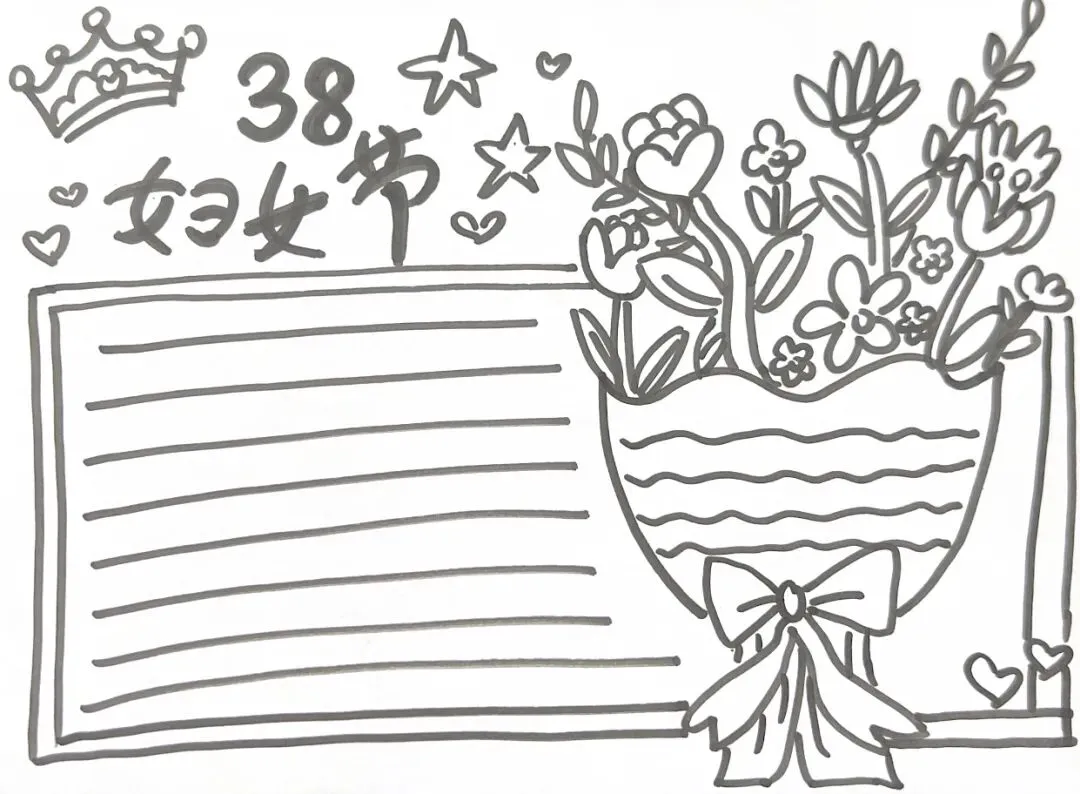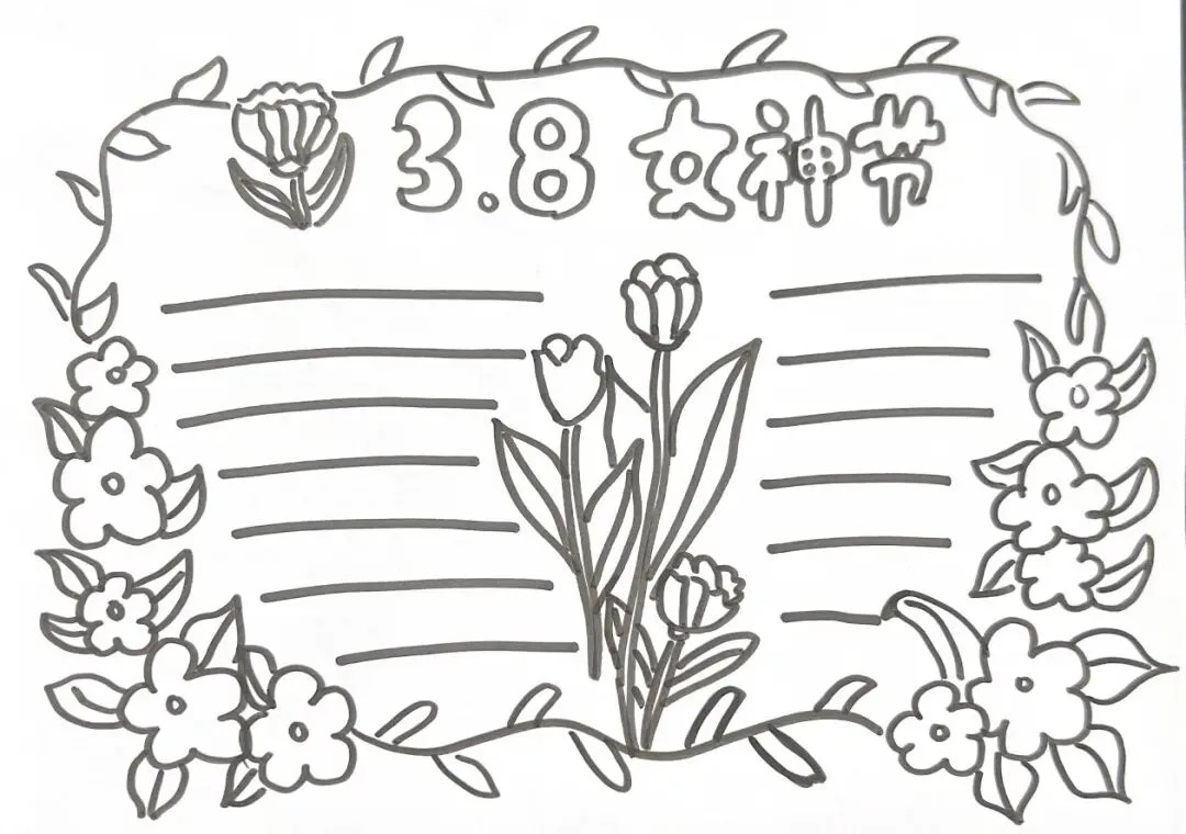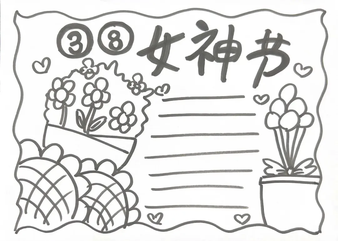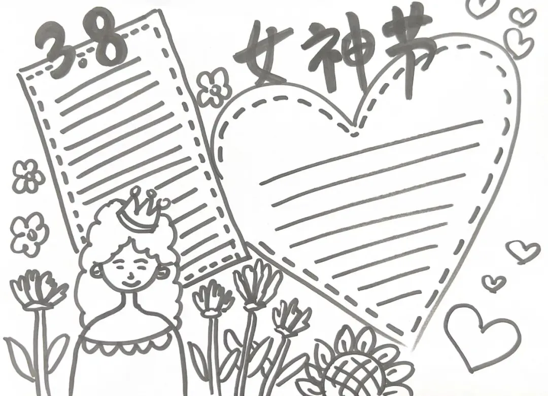 手绘三八女神节手抄报线稿(可直接打印涂色)
