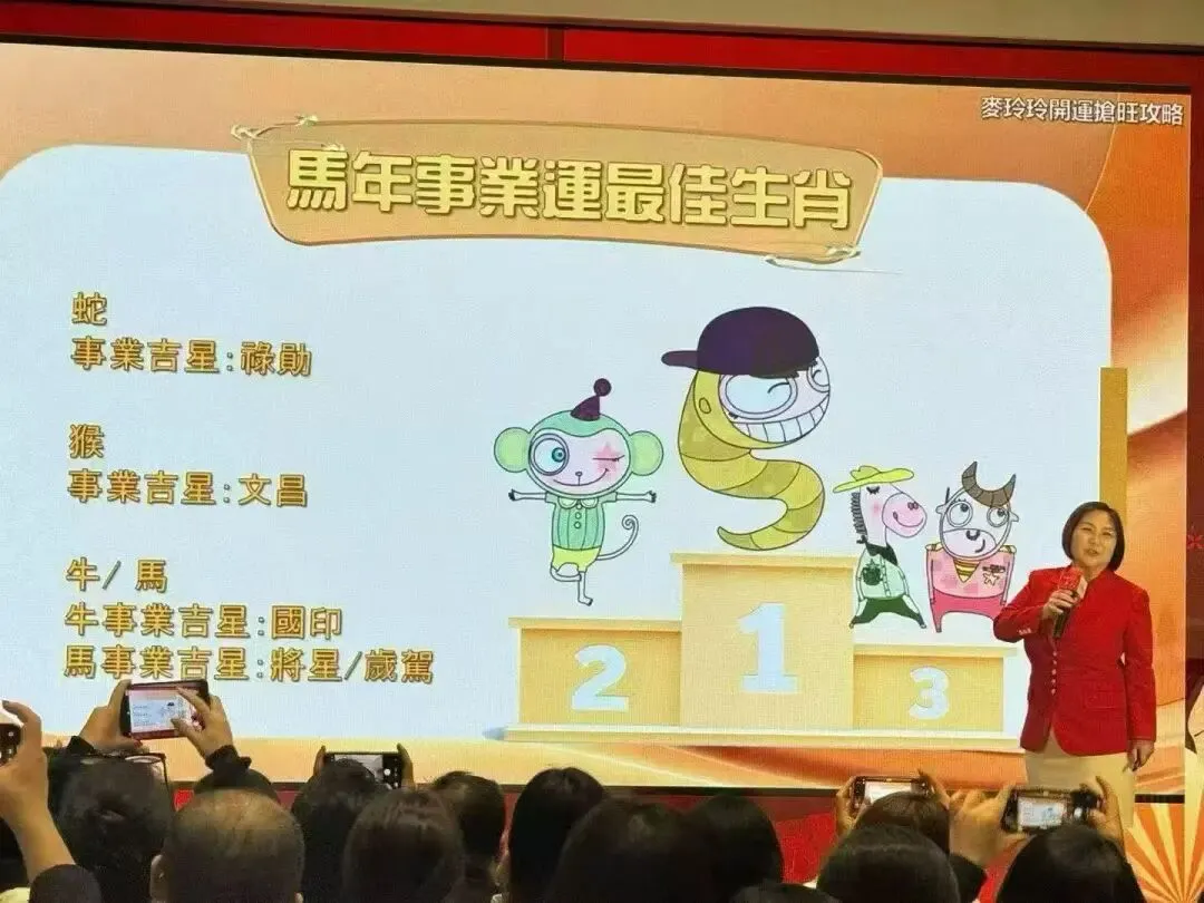 2026年是丙午马年,俗称“双火年”。麦师傅把这一年的运势拆解得那叫一个通俗易懂。她说今年外面世界不太平,风大雨大,但咱们中国这边风景独好。至于投资策略,她的总结只有六个字:“正财稳,偏财险。”翻译过来就是:别想着一夜暴富去炒那些乱七八糟的高风险项目,老老实实搬砖最安全。要是非要去赌一把,那可能最后连买孙燕姿演唱会门票的钱都得搭进去——哦对了,说到孙燕姿,昨晚现场还真抽出了几张她演唱会的门票,那是真的让台下几百双眼睛瞬间绿了,举手互动的热情比抢红包还猛。