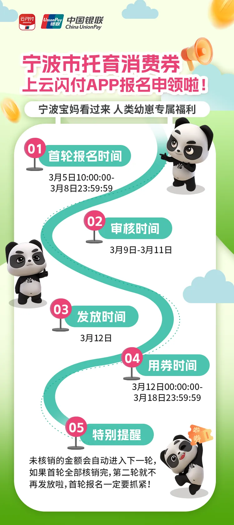 U享福利 | 宁波市托育消费券上云闪付APP报名申领啦!