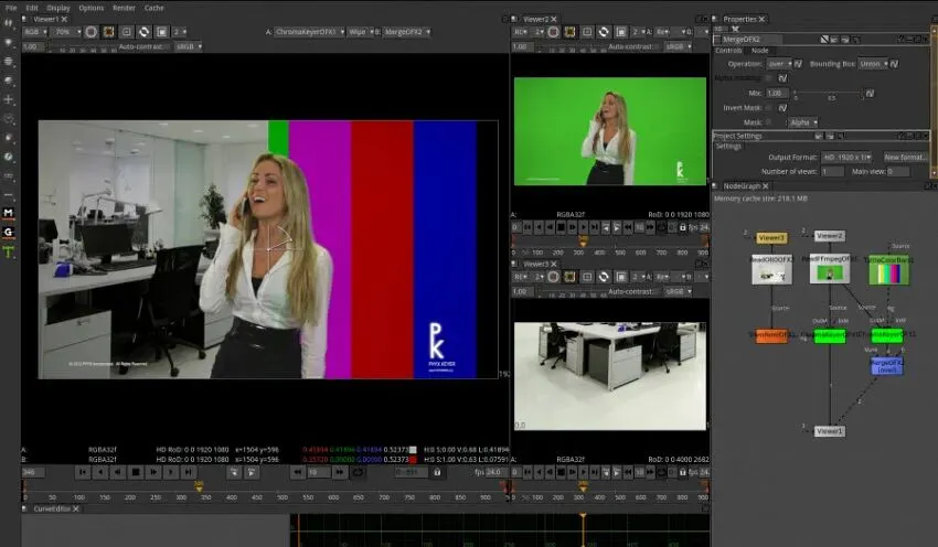 Natron 的工作流程围绕节点图展开,其中每个效果或动作都由一个节点表示,并按逻辑流程连接。这使用户对其视觉效果管道的每个元素都有高度的控制权。它包括一套强大的工具,用于 2D/2.5D 合成、抠像(绿幕)、动态遮罩绘制和 2D 跟踪。虽然其开发缓慢且不稳定,但其核心功能仍然是预算有限的严肃 VFX 艺术家的强大替代品。