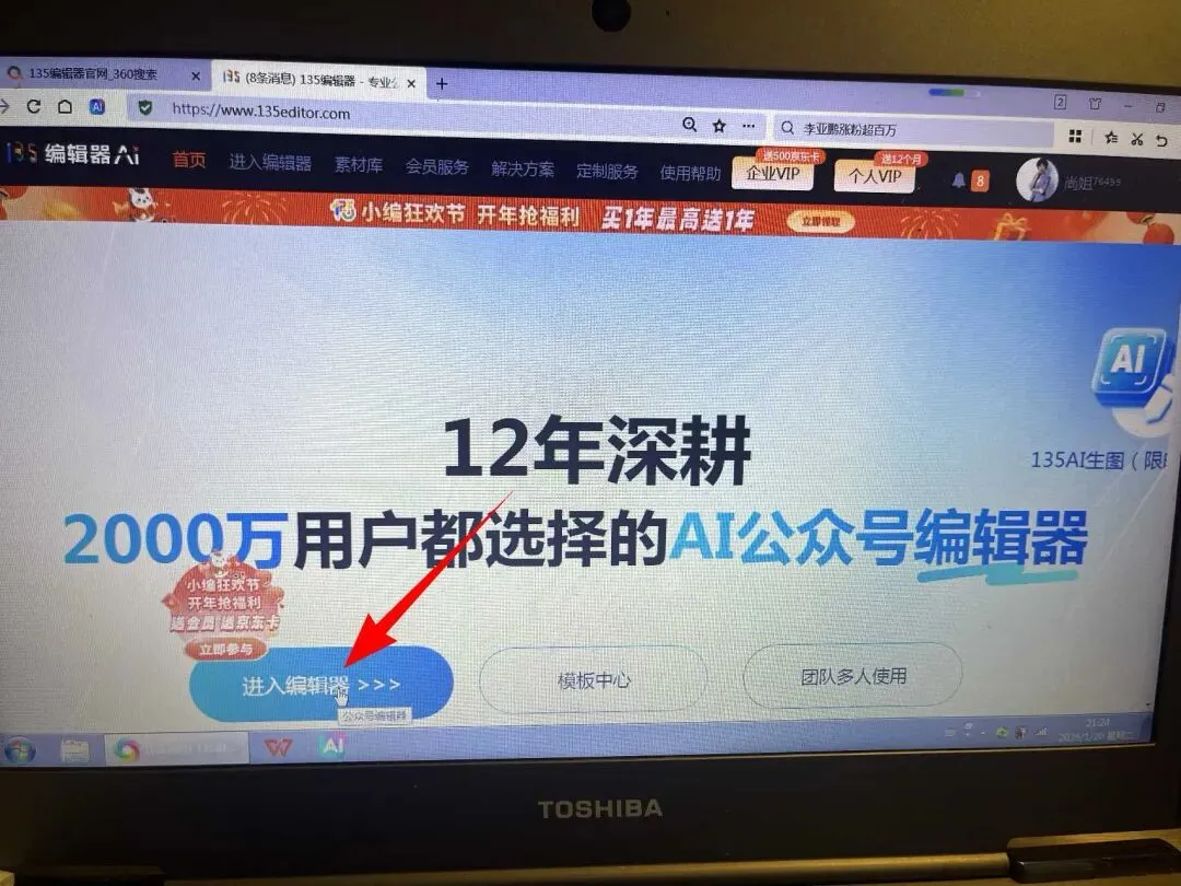 打开浏览器找到135编辑器进入