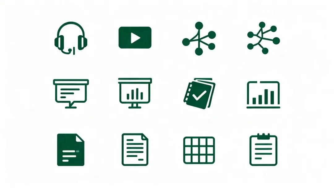 这不是 NotebookLM 最狠的地方。最狠的是:同一份文档,它能一键生成 10 种完全不同的输出——播客、视频、思维导图、PPT、测验题、闪卡、信息图、报告、数据表、笔记。一份输入,十种产出。