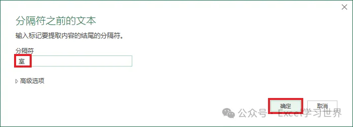 4. 在弹出的对话框中输入“室”–> 点击“确定”