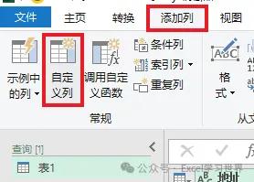 5. 选择工具栏的“添加列”–>“自定义列”