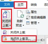 9. 选择工具栏的“主页”–>“关闭并上载”–>“关闭并上载至”