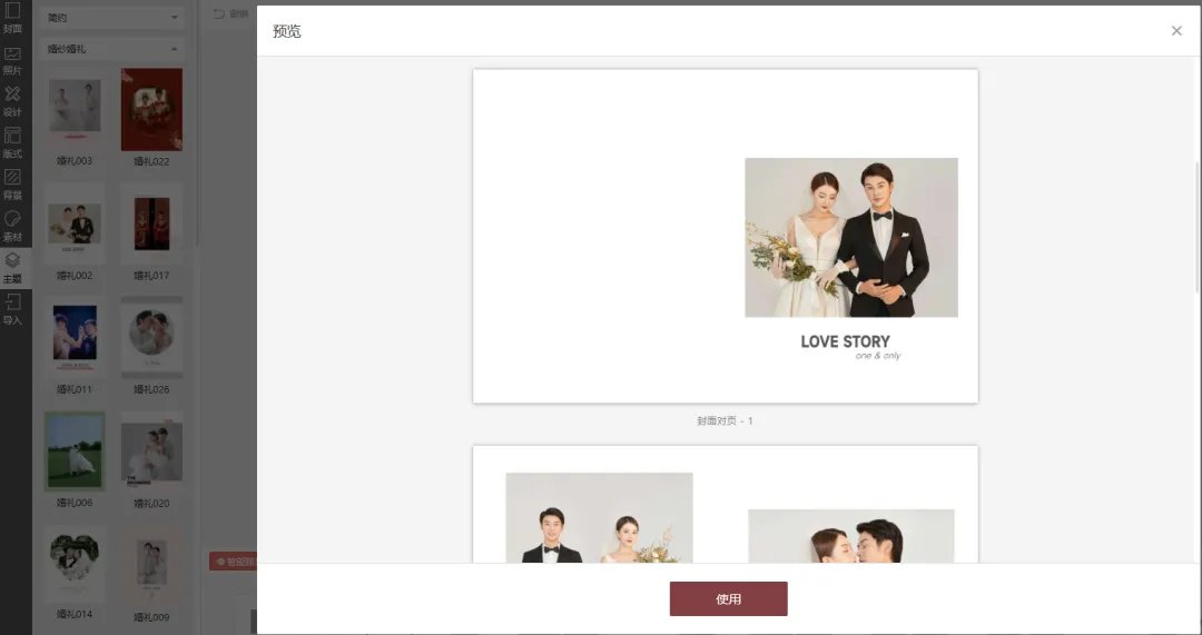 预览照片书主题模板