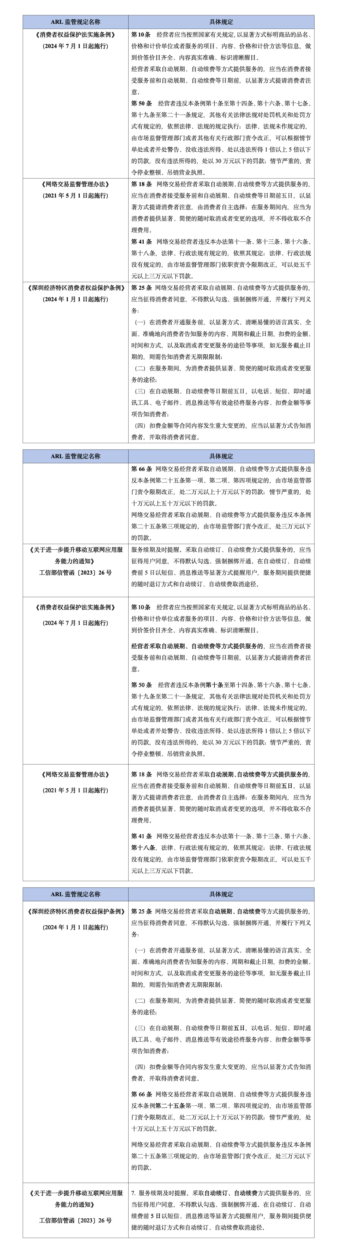 通过以上ARL监管规定与处罚案例可知,《消费者权益保护法实施条例》《网络交易监督管理办法》《关于进一步提升移动互联网应用服务能力的通知》等全国性规范性文件有关ARL的规定较为笼统,地方性法规《深圳经济特区消费者权益保护条例》的规定更为明确具体,涵盖前述全国性规范性文件的规定。