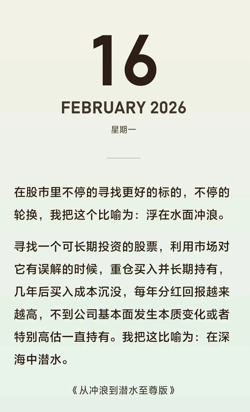 我在反复阅读《从冲浪到潜水(至尊版)》的基础上,总结出了“五个一”散户乙投资理论: