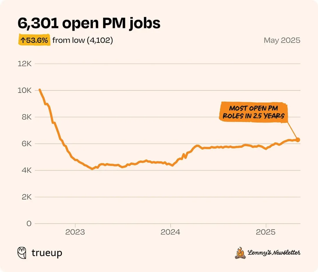 这句话值得停下来想一下。事实上,这一趋势已经有数据在验证了:PM 的需求并没有因为 AI 而减少,反而在增长——因为工程交付速度上去了,“说清楚要做什么”这件事的瓶颈就更突出了。