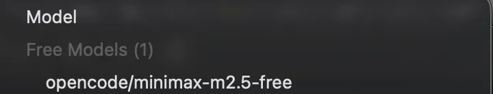 如果你只是想最快开始,建议先用 OpenCode 自带免费模型,选择带有 free 标记的模型。
