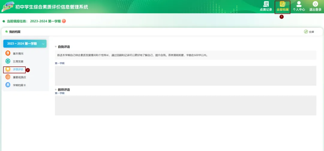 点击【点滴记录】–>【评语评价】可以填写自我评语。