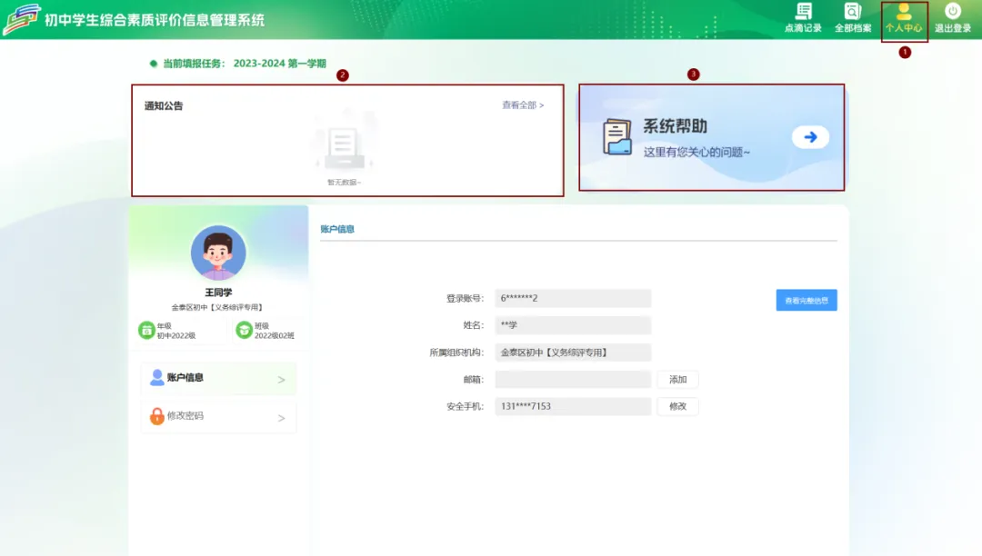 可查看通知公告、系统帮助。