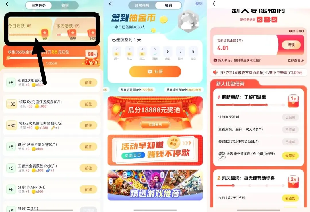 增加活跃度满60也可白嫖红包