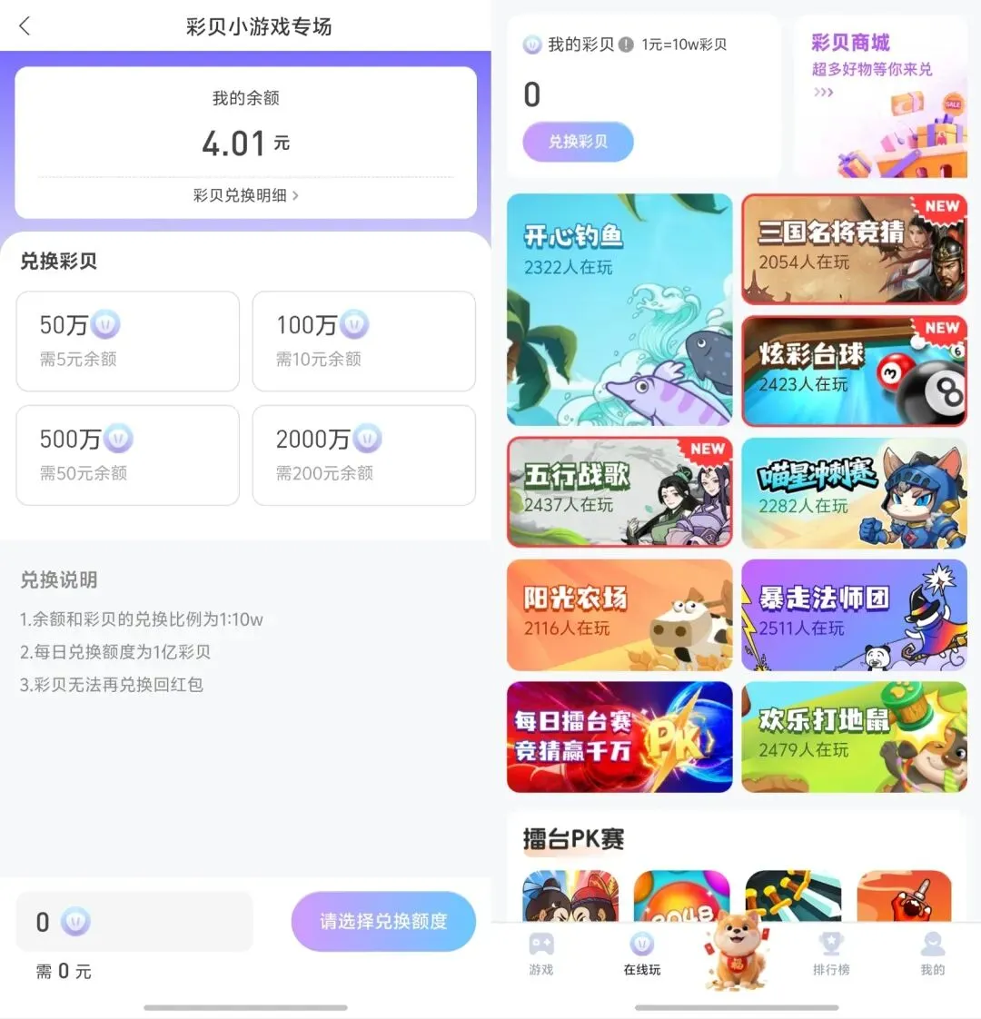 内置多款任务和小游戏