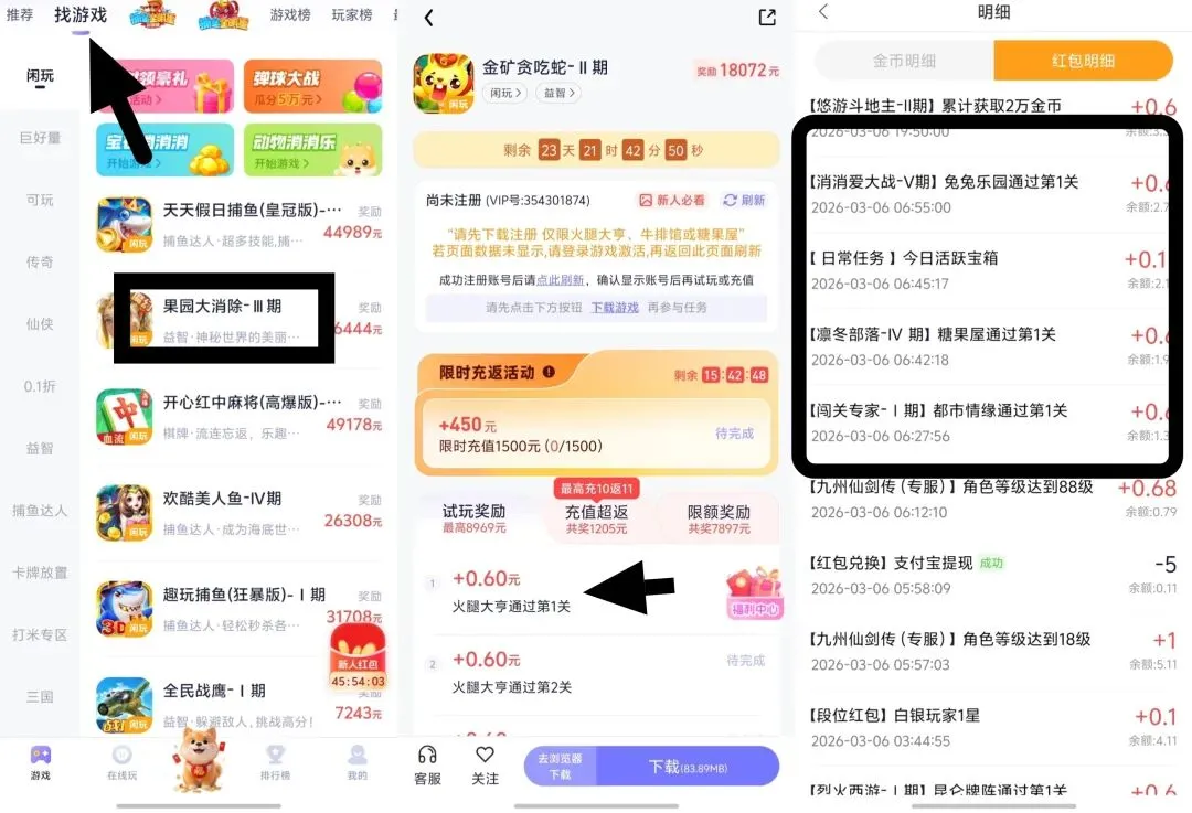 点击找游戏➡️点击通关类型的(不要做捕鱼和升级类)