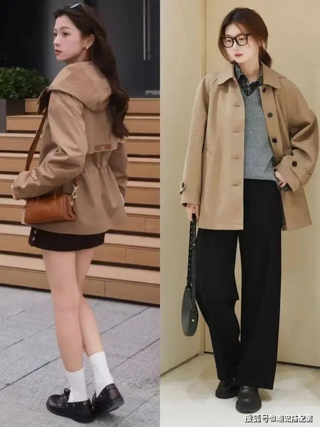 像是风衣一直都是备受大家欢迎的单品,尤其是对于今年春天来说短风衣完全不挑年龄和人群,像是以前流行的风衣通常都是收腰或者及腰的款式,从而很容易暴露腰间的赘肉,那么最好的方式就是选择过腰不过臂的长度,这样不仅可以遮肉显瘦,同时还能凸显出造型的氛围感,视觉上会更加的显高显腿长。