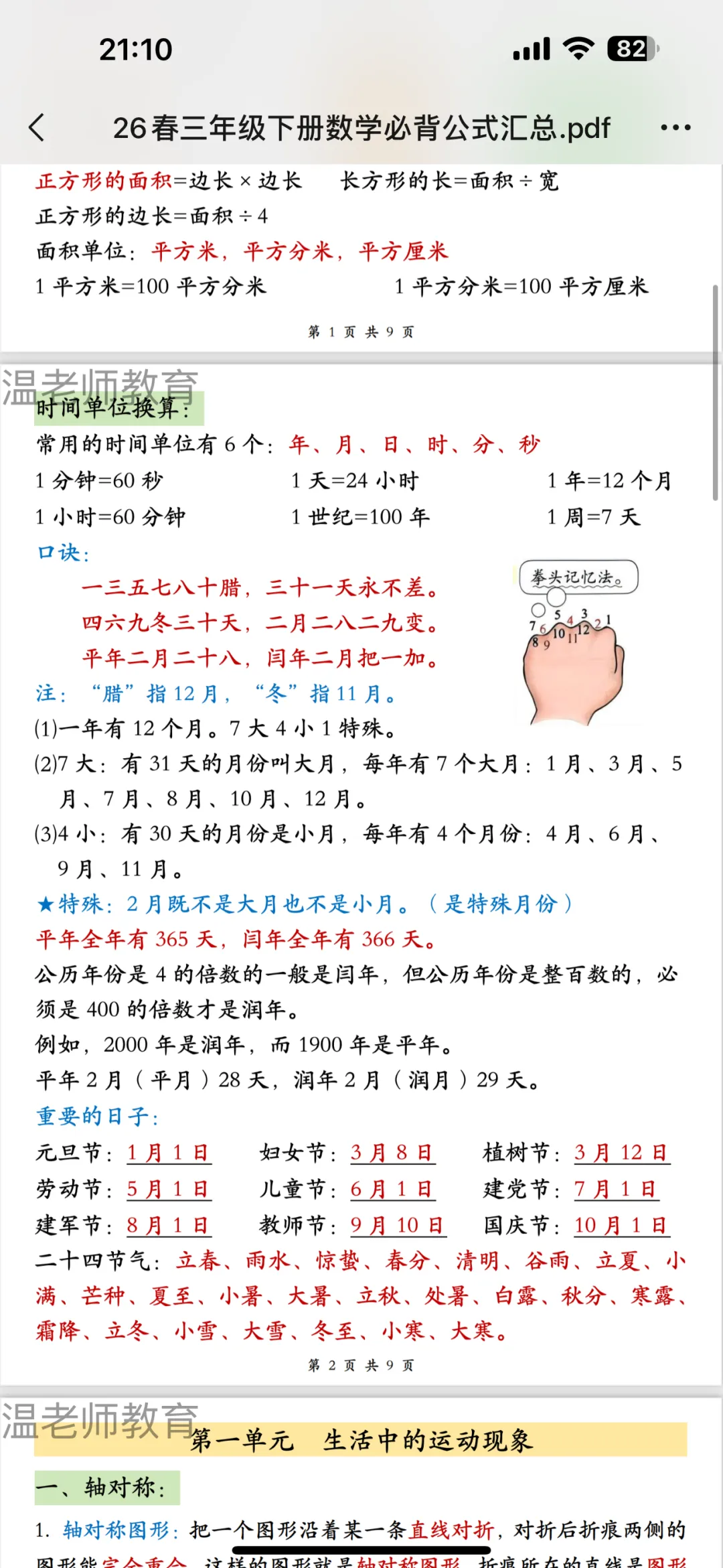 今天为大家分享26春季新版三年级下册数学【必背公式汇总】,内容系统清晰,重点突出,适合家长陪孩子一起理解和记忆。趁着三年级下学期,提前准备起来,四年级轻松过渡!