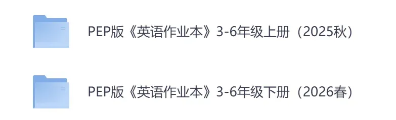 小学英语PEP版《英语作业本》3456年级上下册(2026春最新版,PDF,三四五六年级全套)26春四下最新版已更新