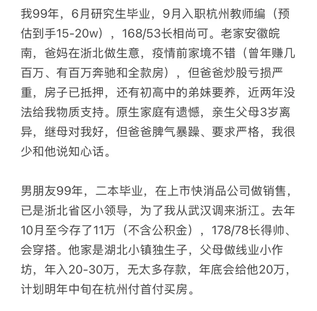 你所有的担心是未来可能会需要你花钱养家,你就开始犹豫了,还没有发生的事情,只是有一定几率你就开始犹豫想要放手。