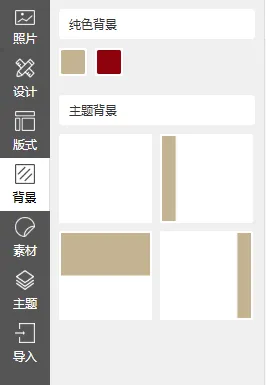 米莫照片书编辑器内置很多照片书主题模板,背景模块集成了更多的页面背景。