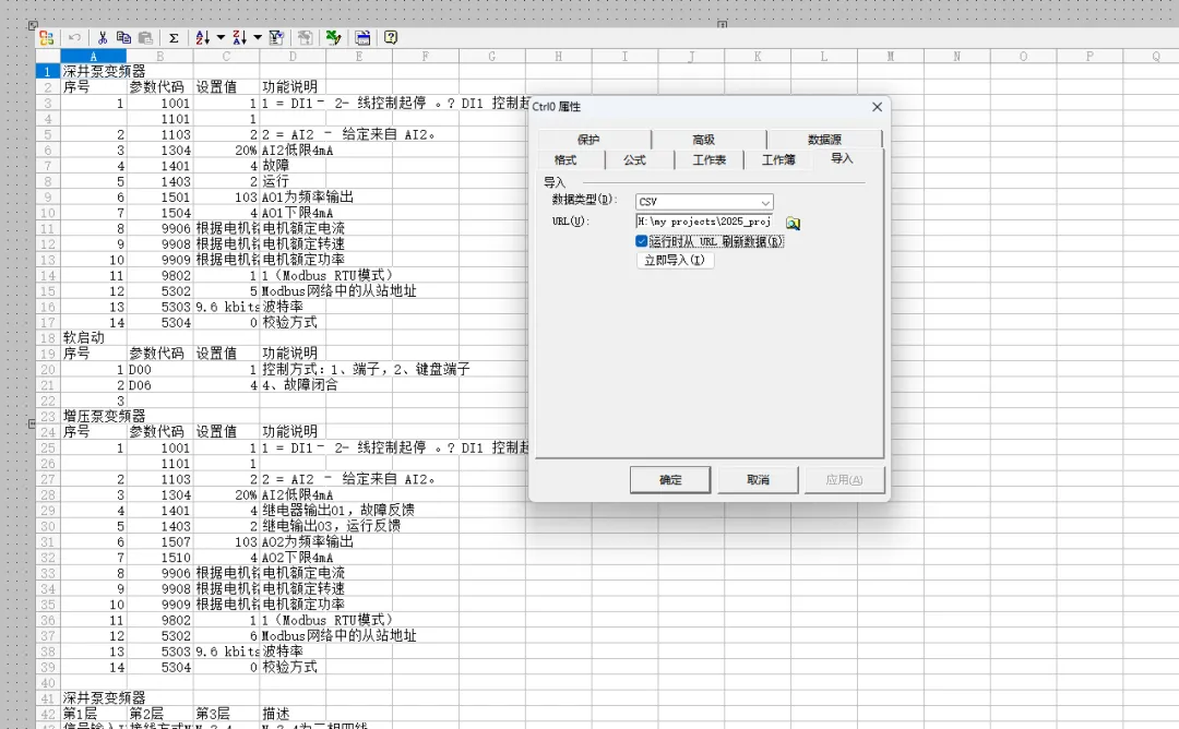 实践—组态王如何调用excel文件内容 在某些场合,需要做一下数据查询,比如报警代码或者参数设置记录,那我们为了查找方面,就数据写入Excel文件中,通过上位机调用查看。 打开组态王ocx控件 找到:Microsoft Office Spreadsheet 11.0 若没有,需要安装OCW11插件 将控件拉入画面,找到导入 可以选择 运行即可