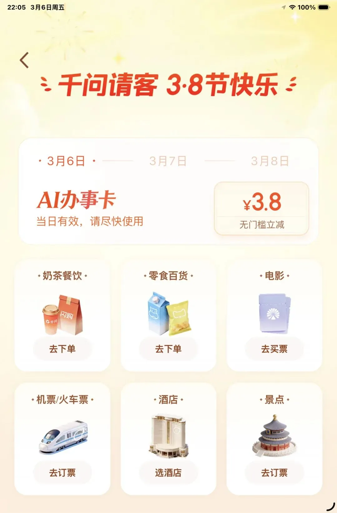 ��号外!千问APP38节又开始发红包啦!进来看教程! 过年发红包最猛的千问又开始发红包啦!🧧 从今天开始为期三天,每天登录APP,点击左上角的千问请客,进入活动界面即可自动领取!🔥 每天可领取一次红包🧧!最低3.8元(比如我)……最高188元!!! 人人有份,每天都有,登录就有! 赶快转发到你的相亲相爱一家人群里啦! 大家一起薅起来!💪 祝大家都能薅到188! 真薅到了记得评论区报喜哦!!!😘