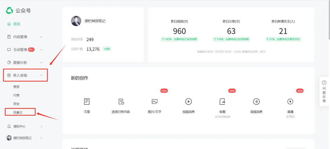 公众号满500粉丝后可以在公众号后台开通流量主,需要电脑网页版后台才可以
